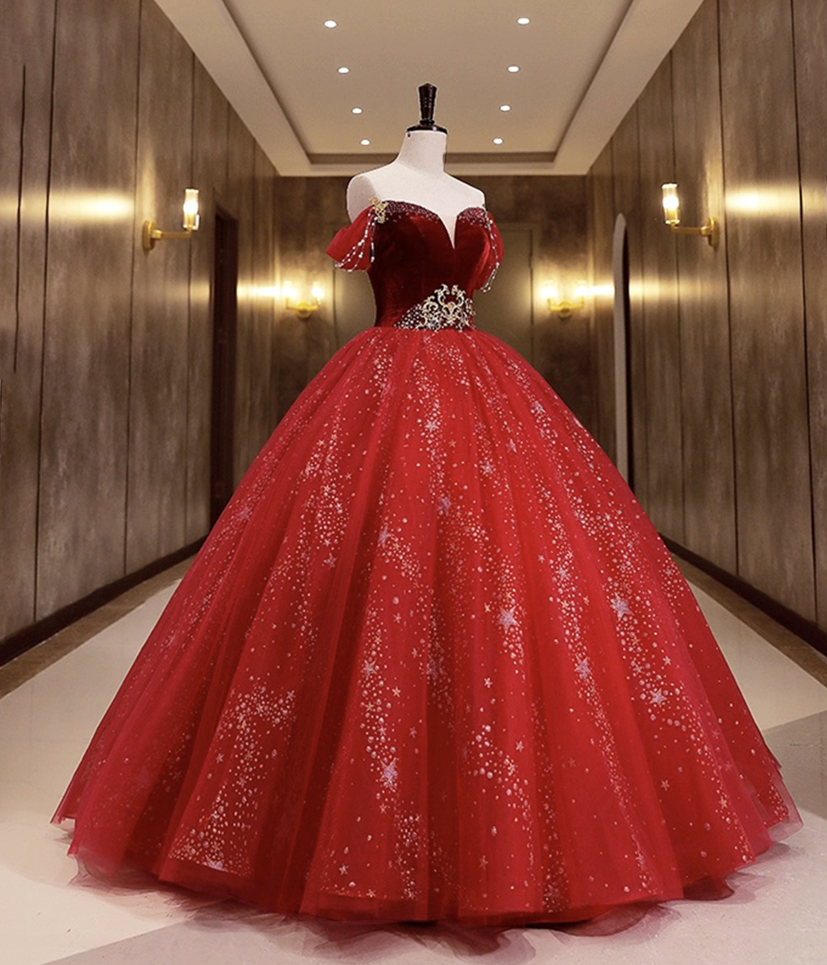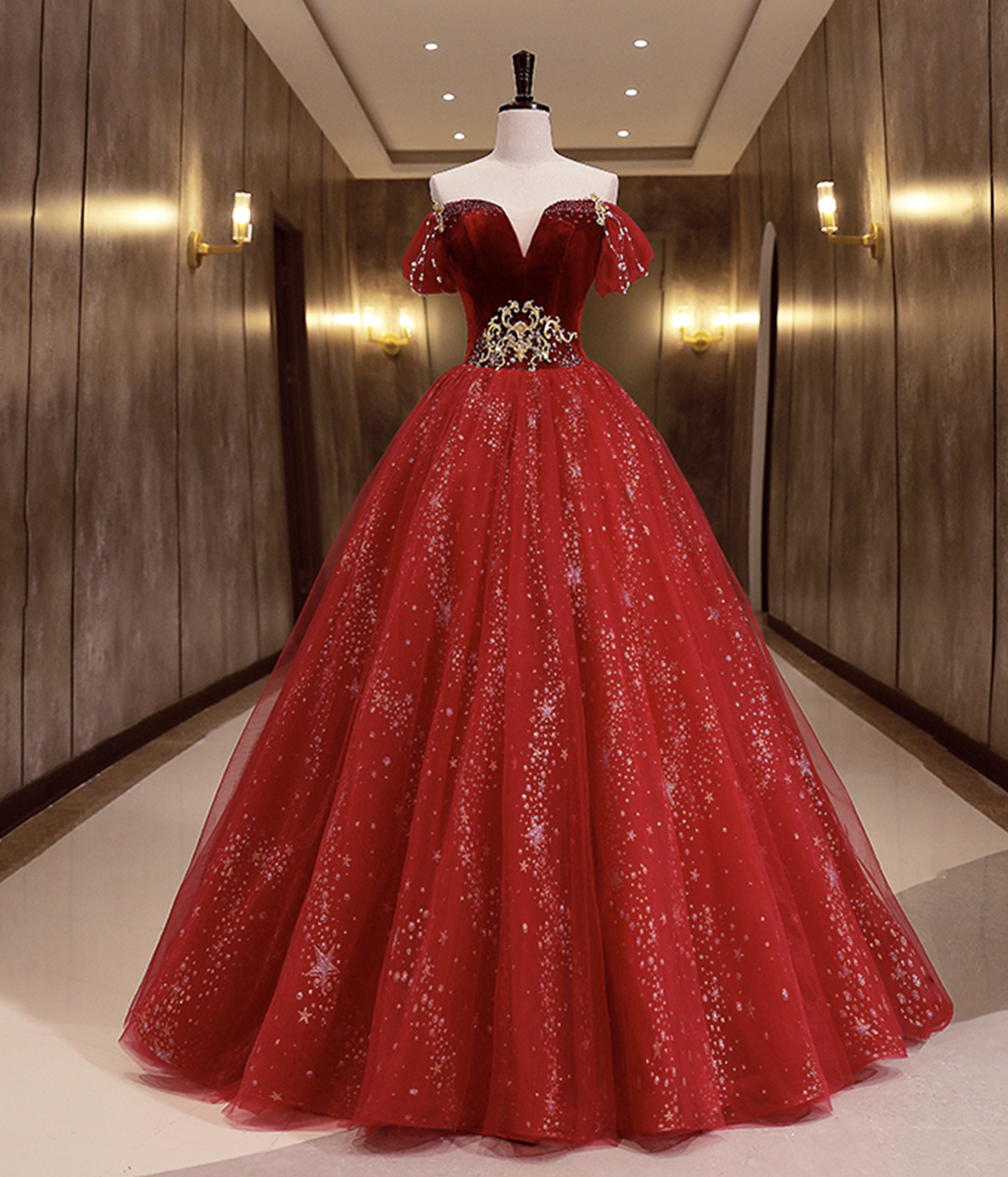 - Burgundy Velvet Tulle Long Formal Dresses, Burgundy Off Shoulder Evening Dresses -