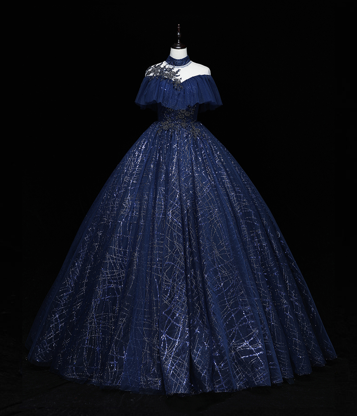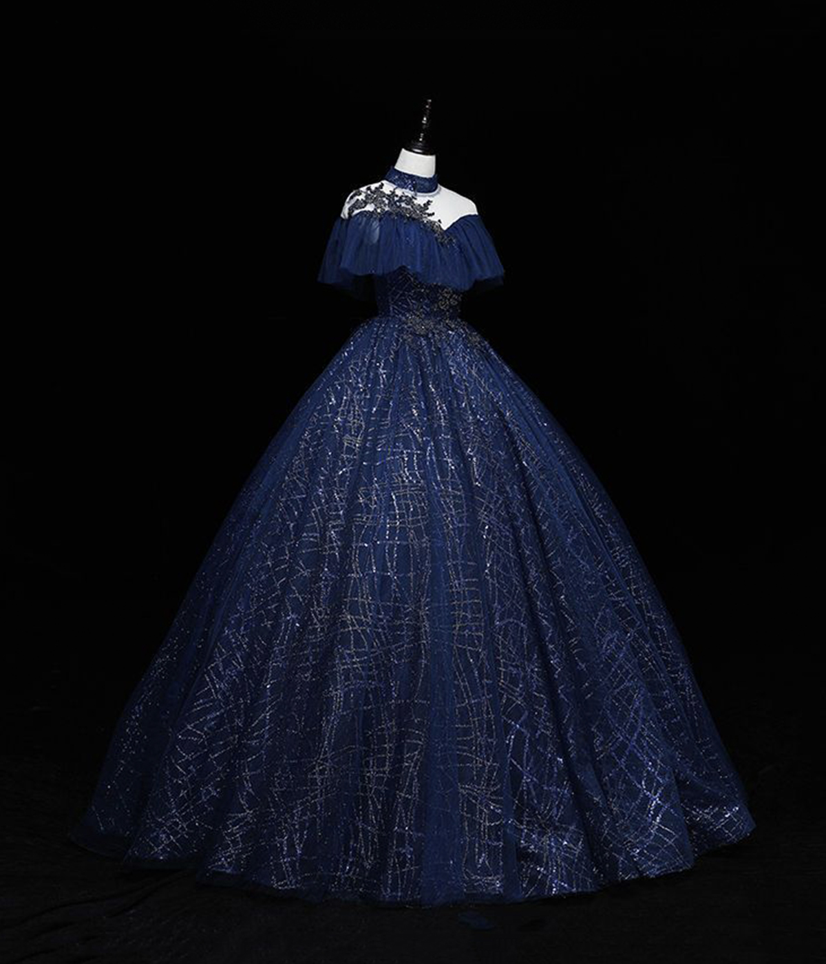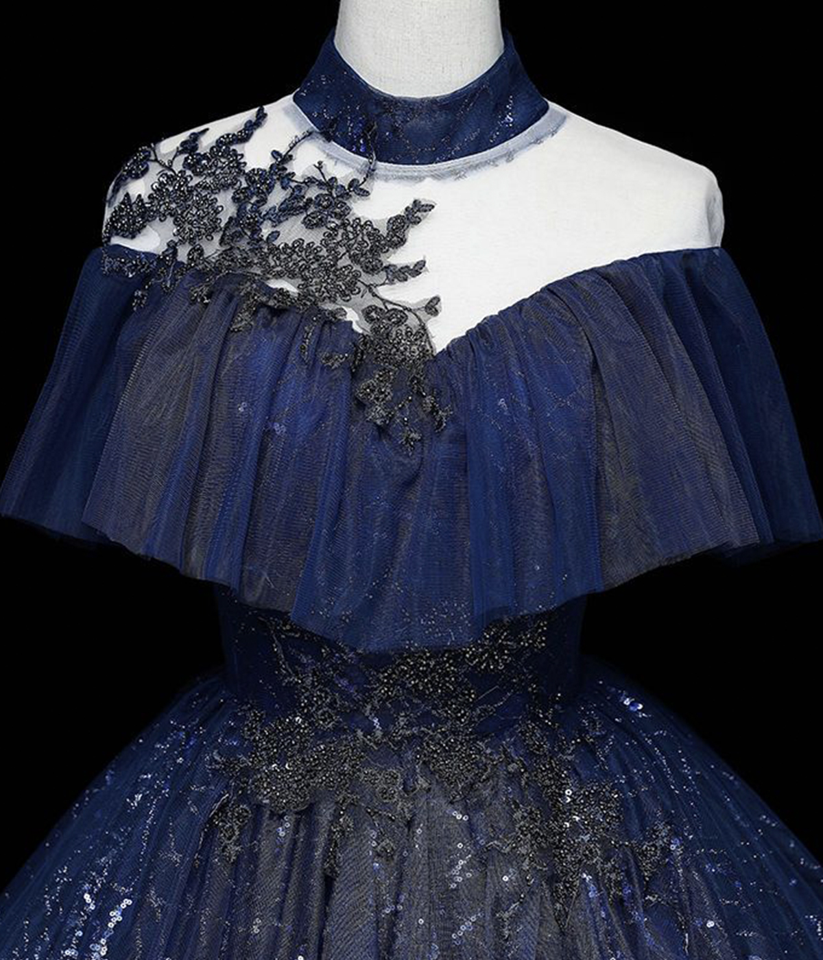 - Blue Tulle Sequins Long Formal Dress, Blue Evening Dress -