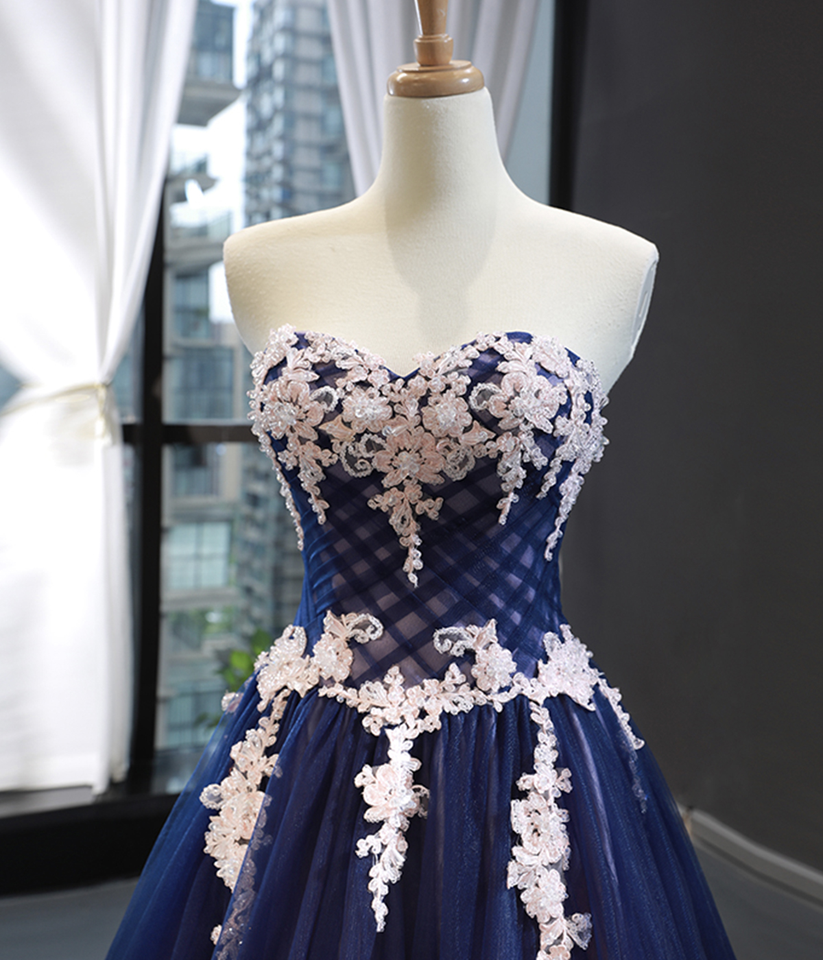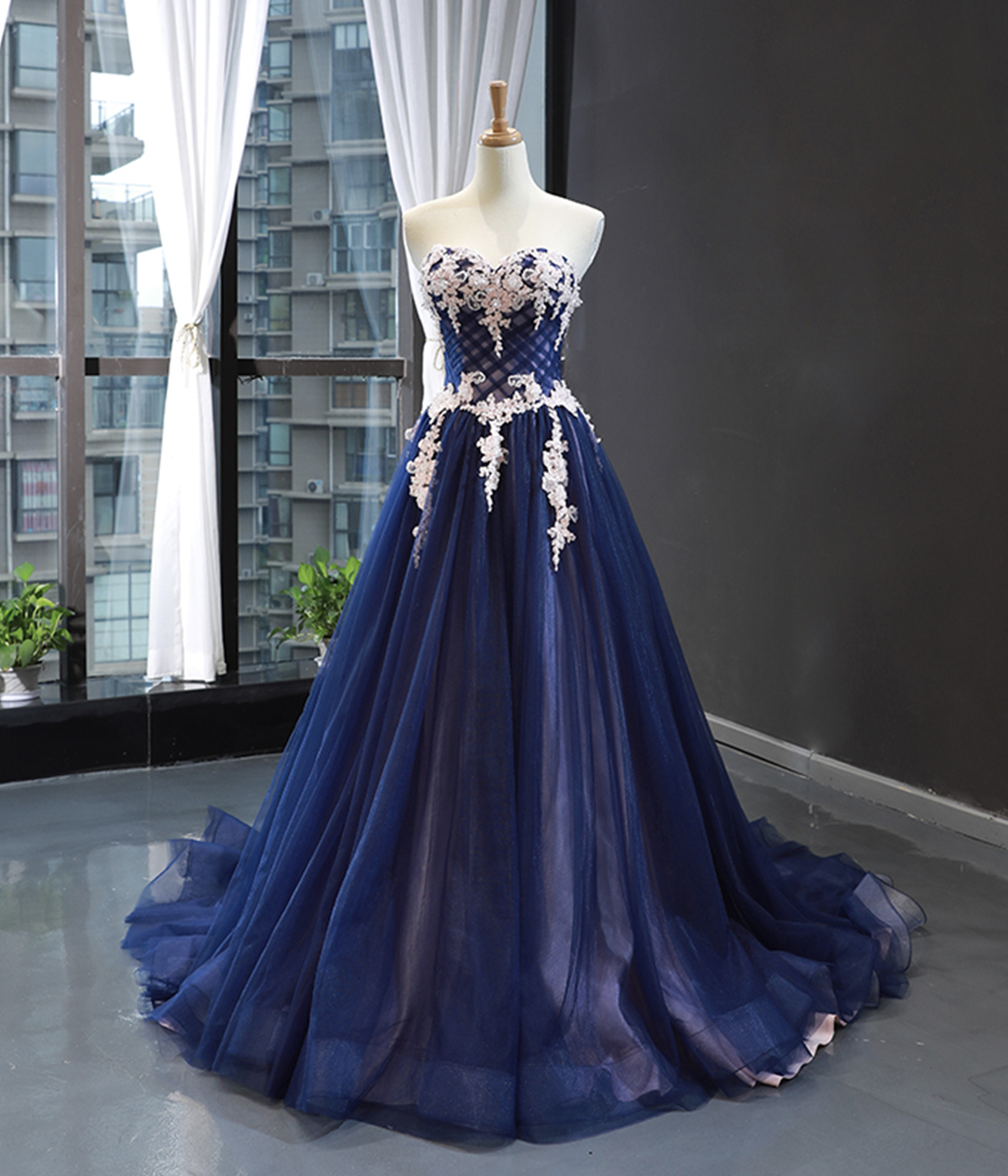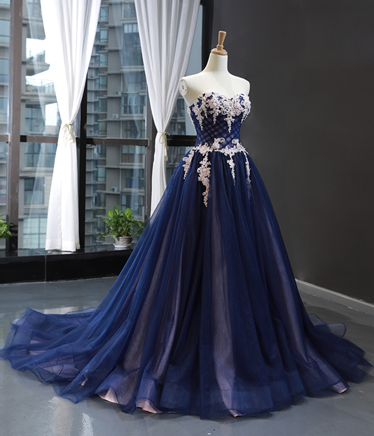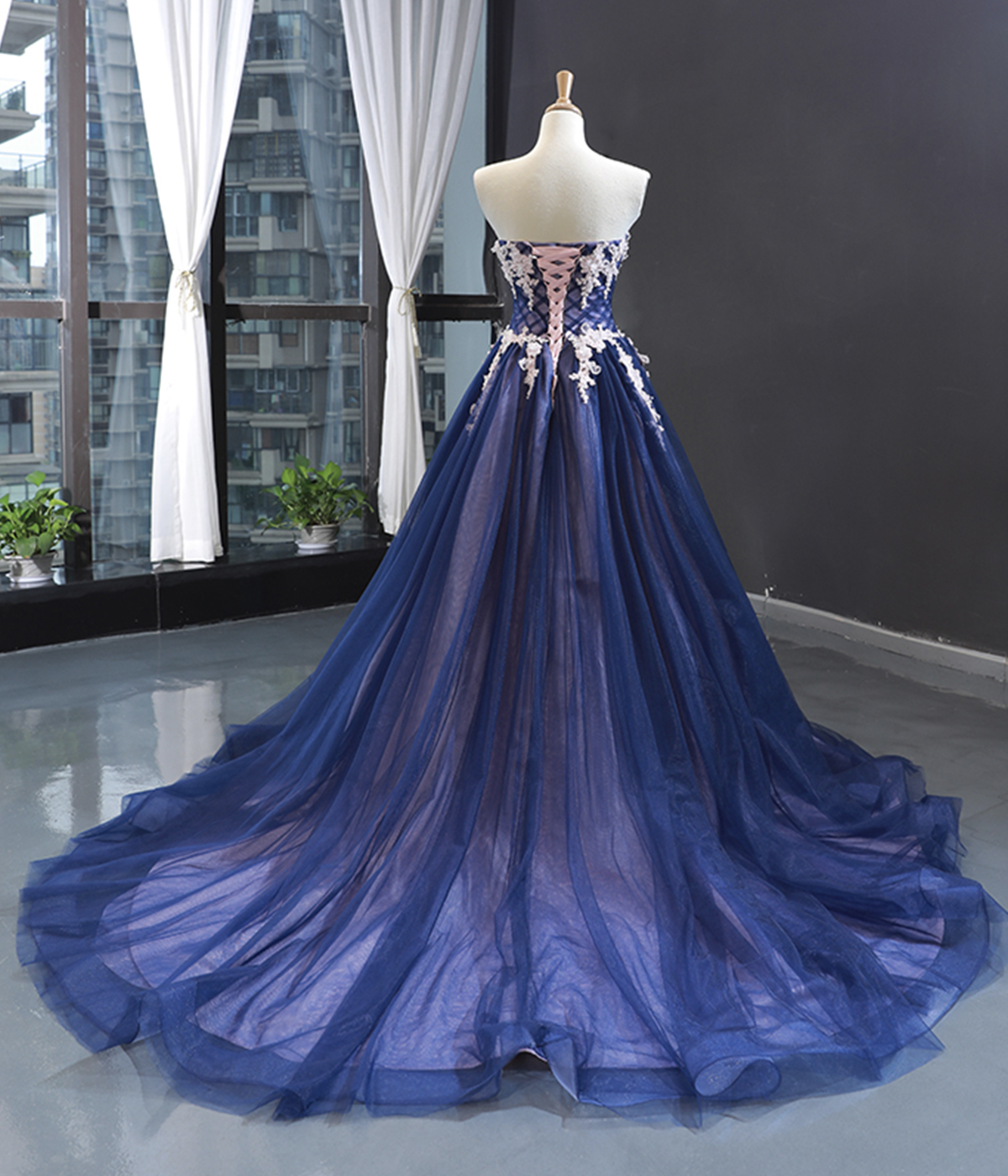 - Blue Tulle Lace Long Formal Dress, Beautiful Blue Evening Party Dress -