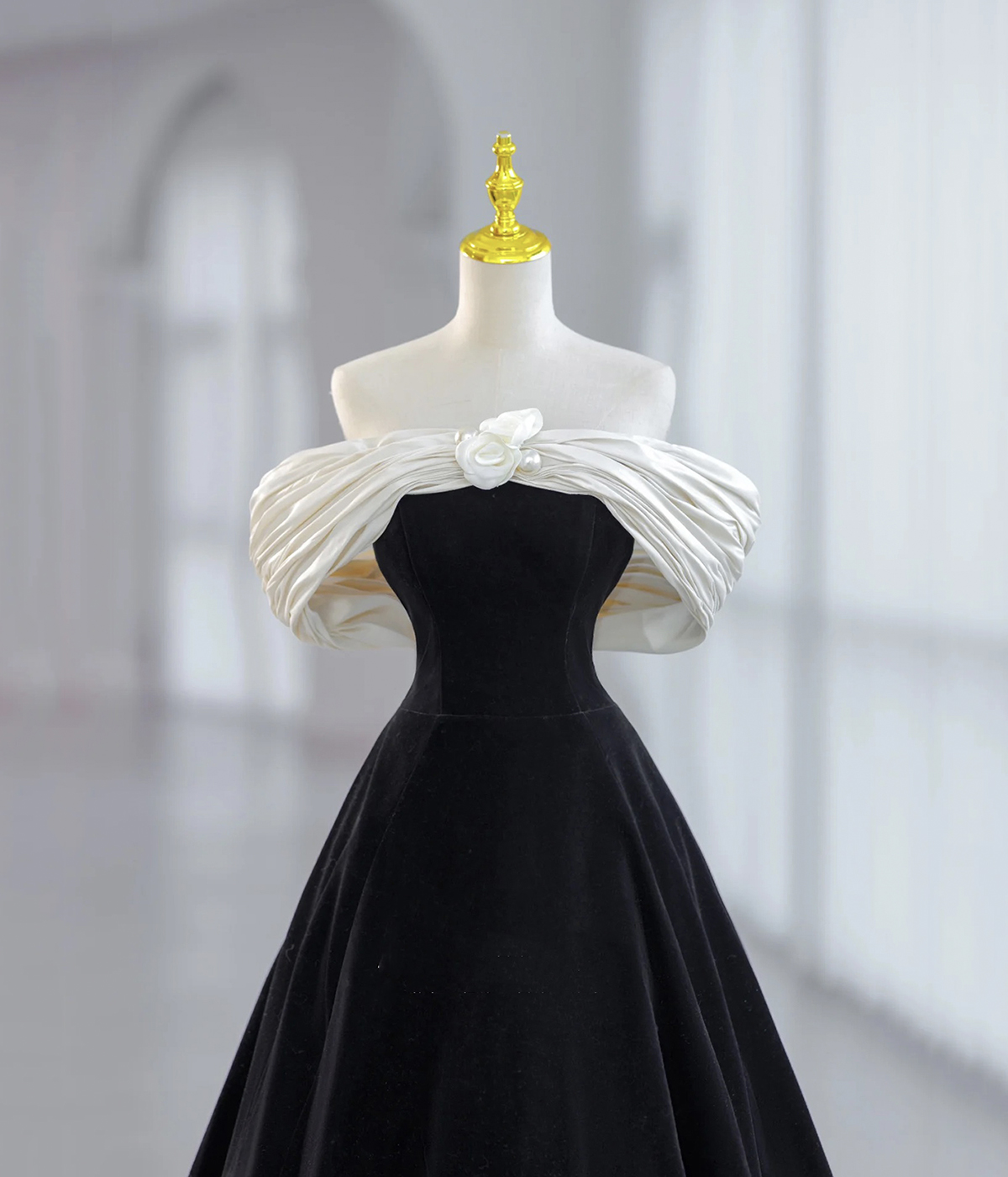 - Black Velvet Short Prom Dress, Black Off Shoulder Evening Dress -