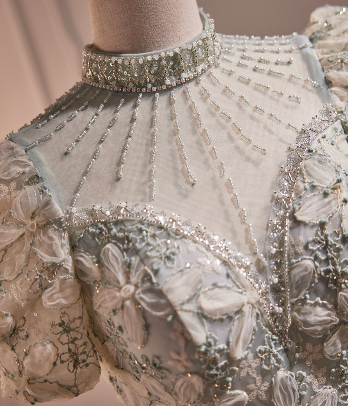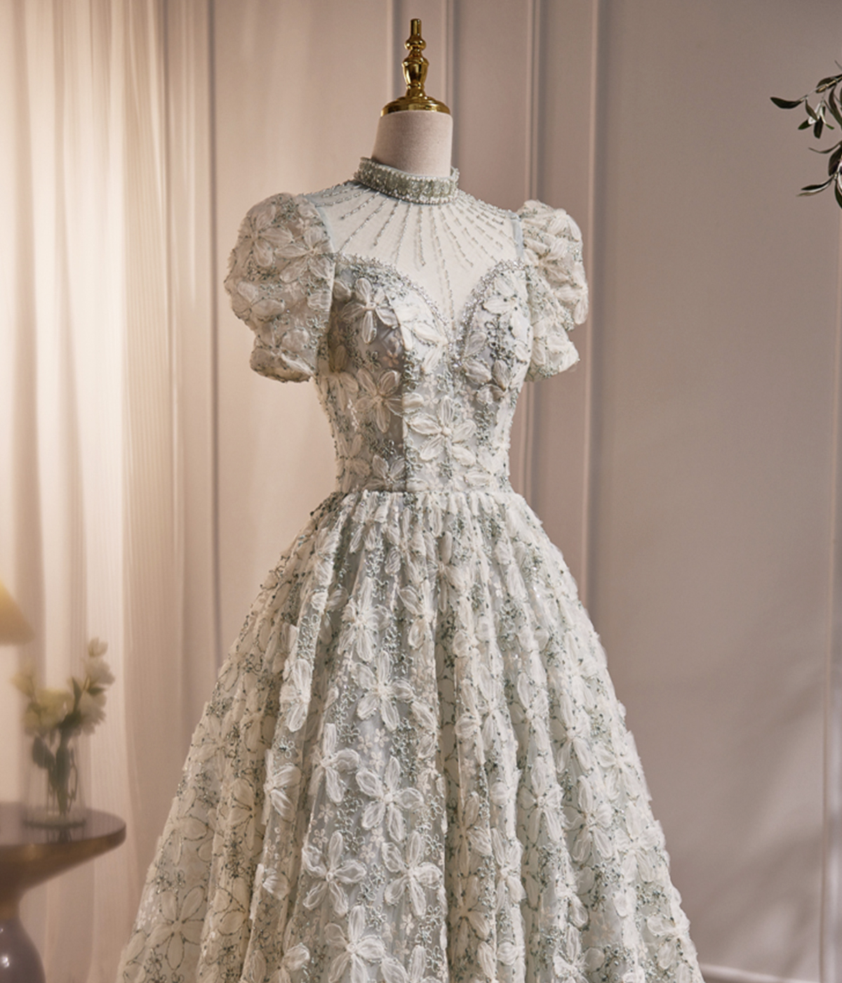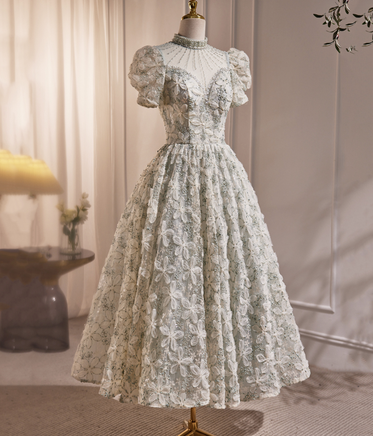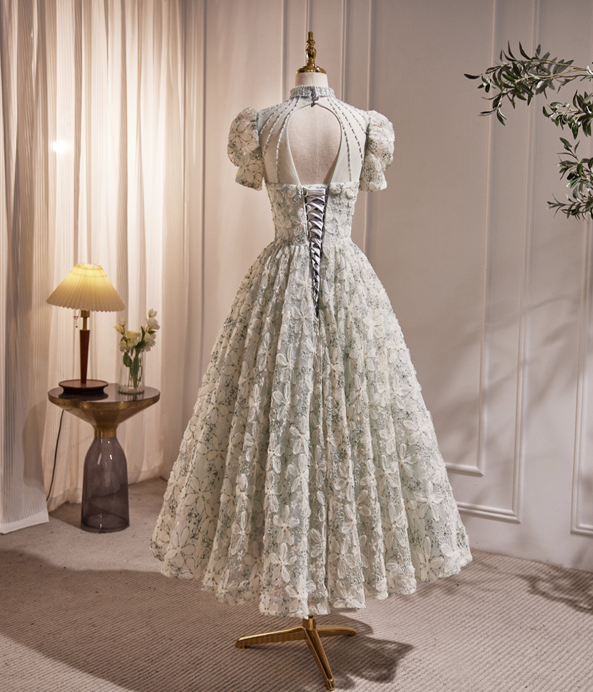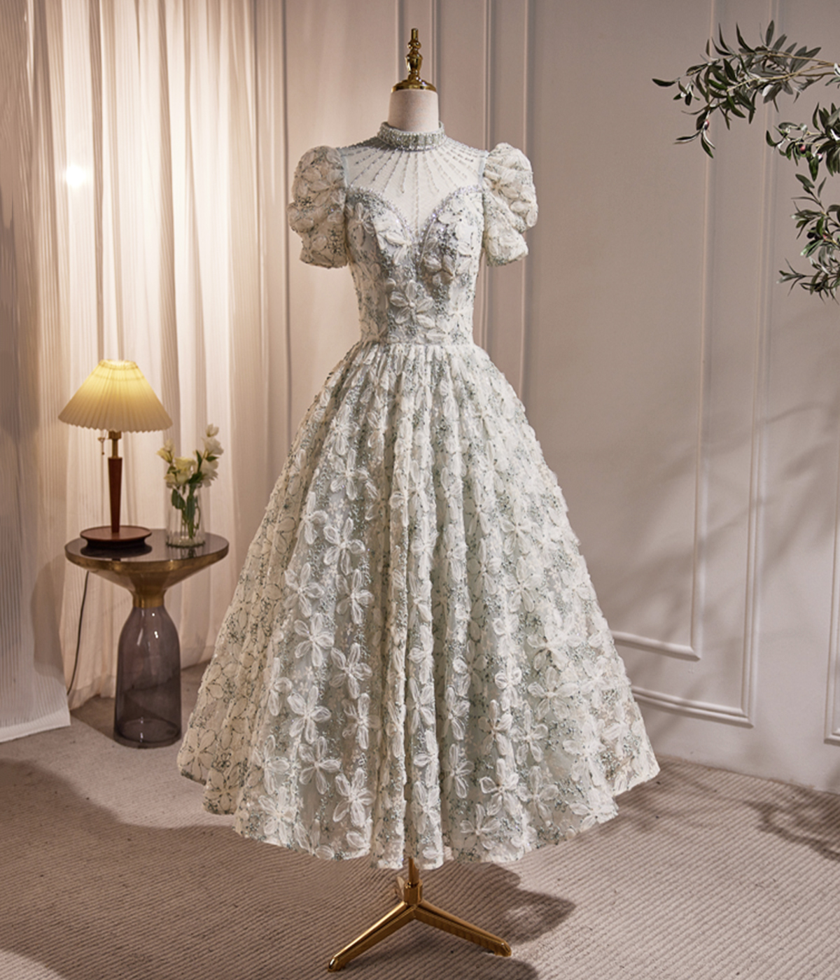 - Cute High Neck Short A Line Prom Dresses, Beautiful Beading Pearl Sequins Party Dresses -