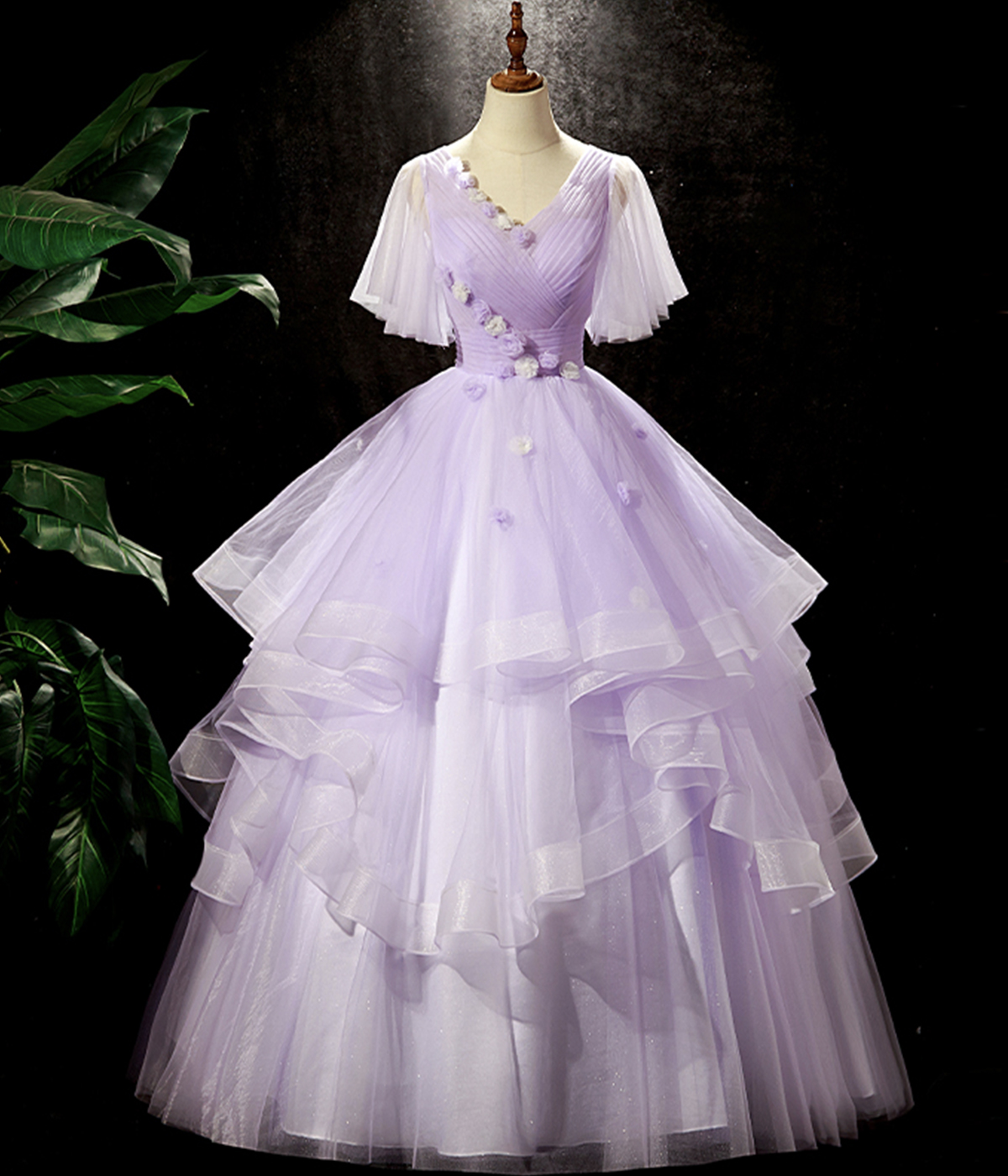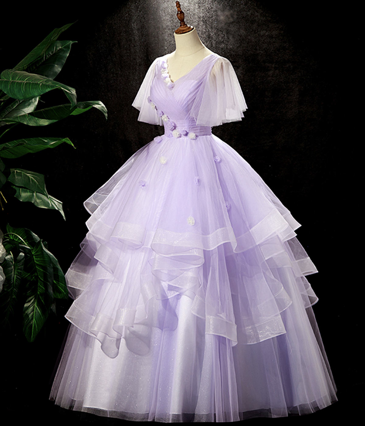 - Purple V-Neck Tulle Long Prom Dresses,A-Line Tulle Formal Dresses -