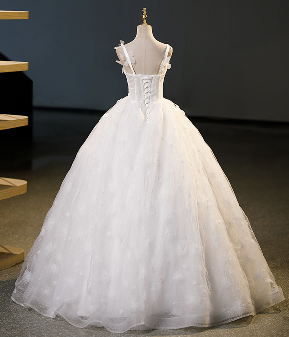 - White Tulle Applique Long Ball Gown, White Evening Party Dress -