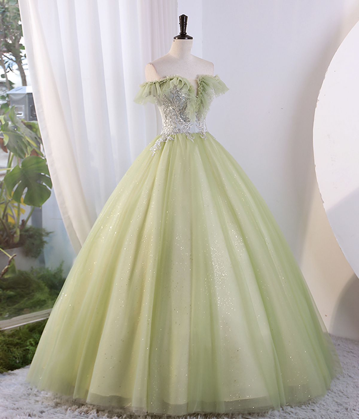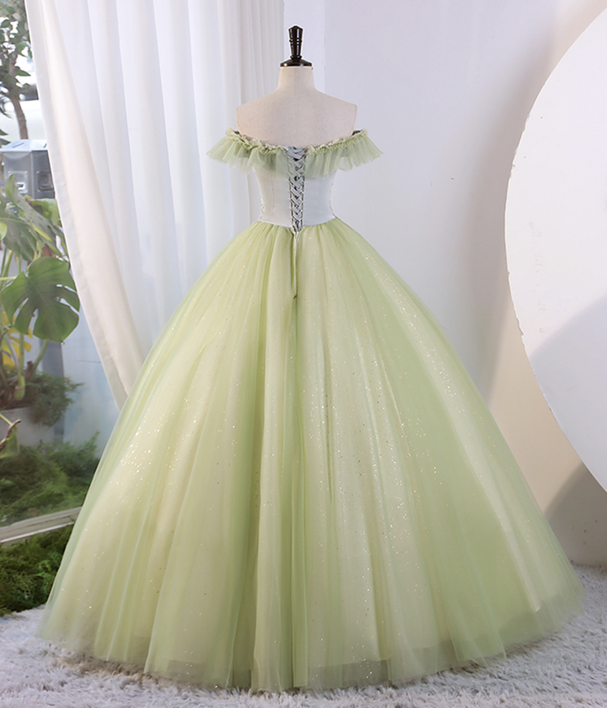 - Green Tulle Floor Length Prom Dress, Off Shoulder Evening Party Dress -