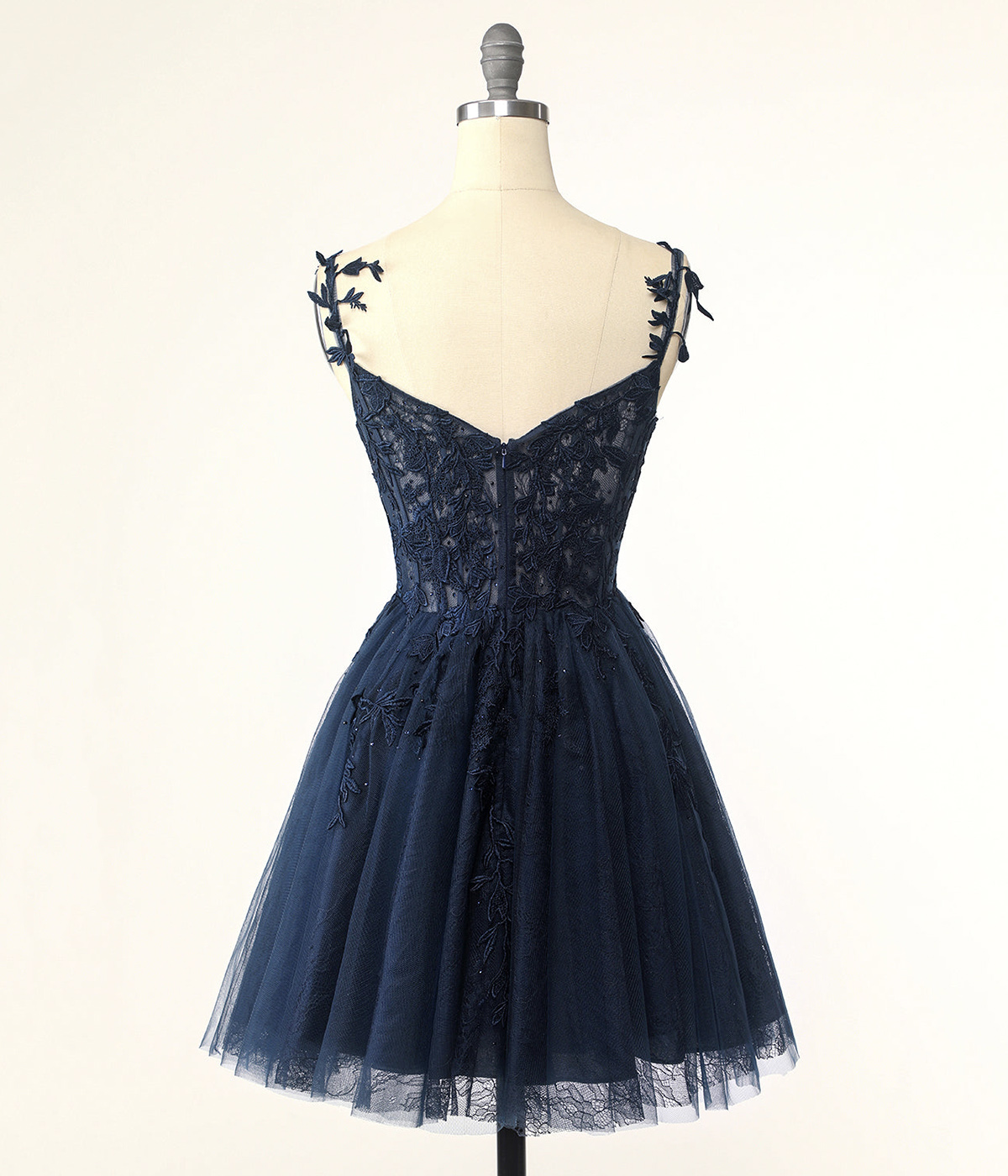 - Navy Spaghetti Straps Knee Length Party Dress with Applique -