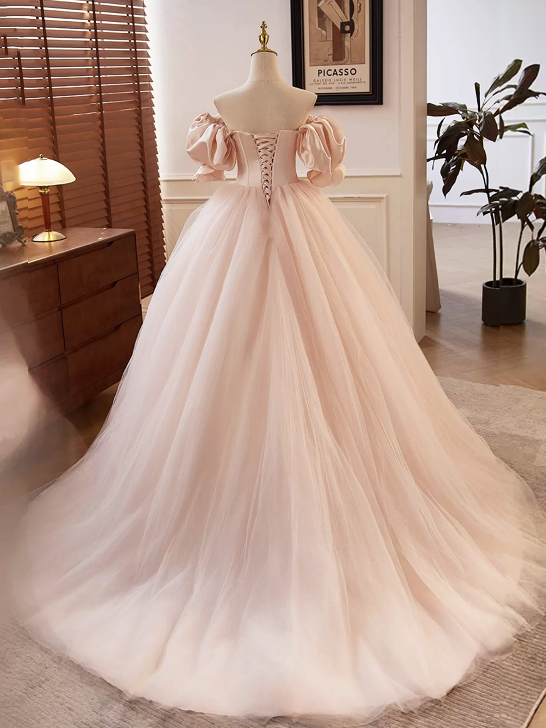 - Pink Sweetheart Neck Tulle Long Prom Dress, Beautiful A-Line Sweet 16 Dress Party Dress -