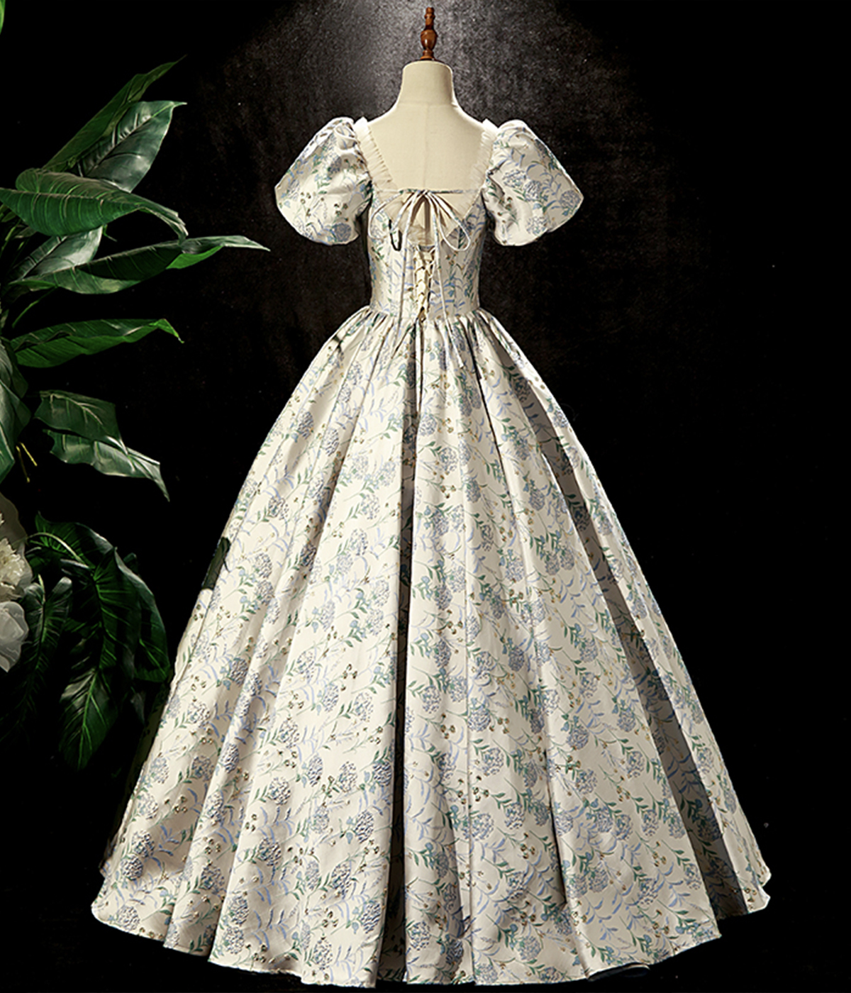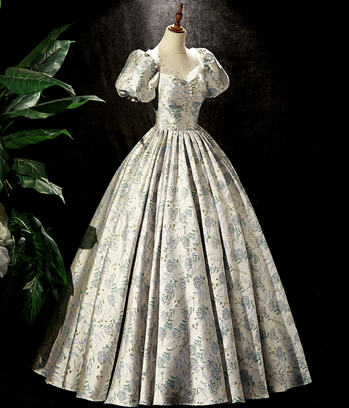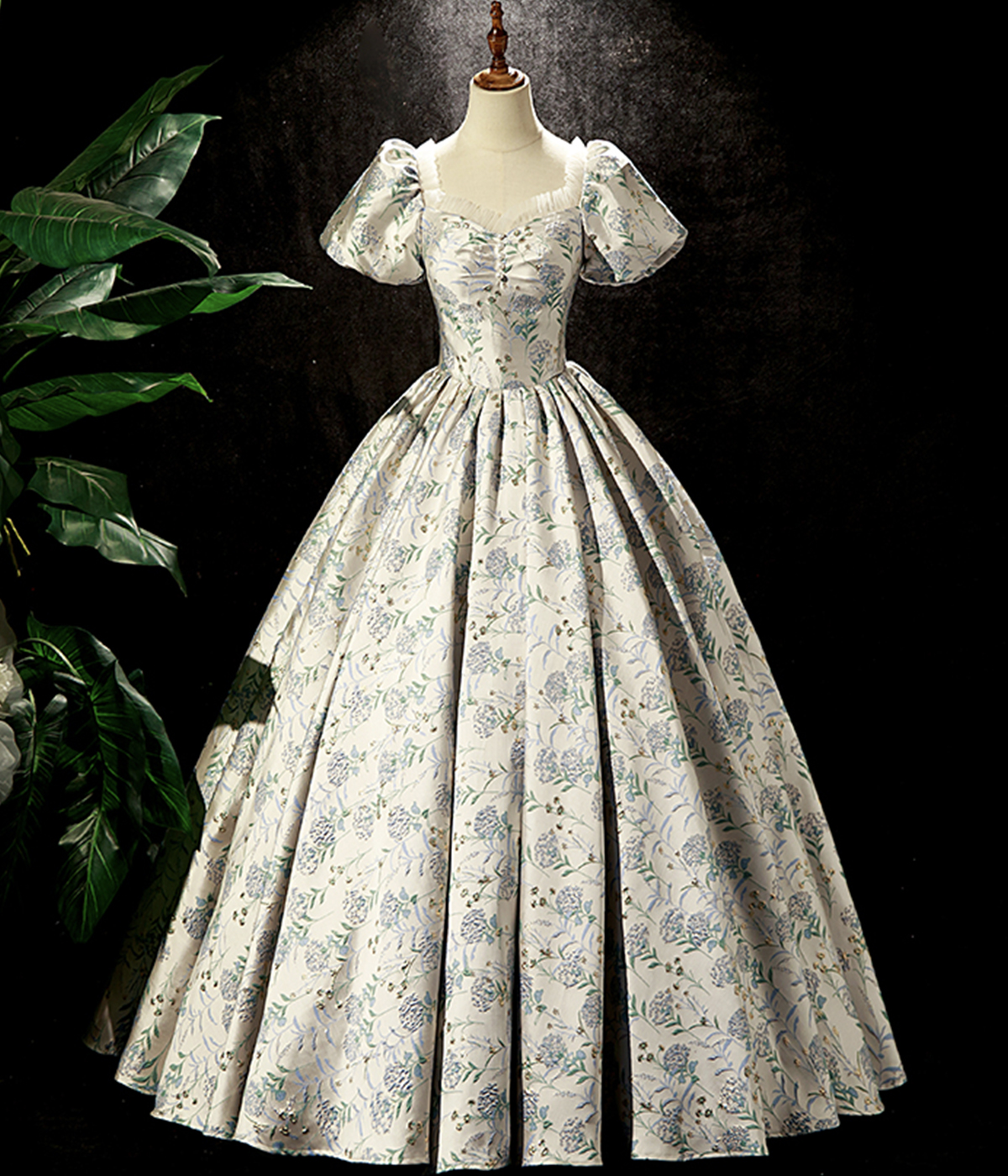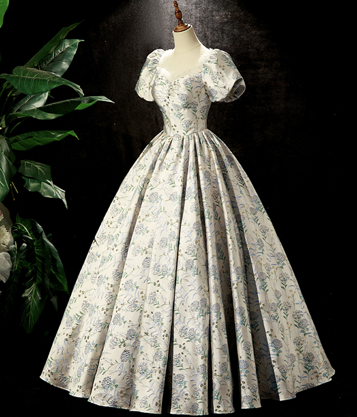 - Fashion Floor-Length Printing Short Sleeve Prom Formal Dresses -