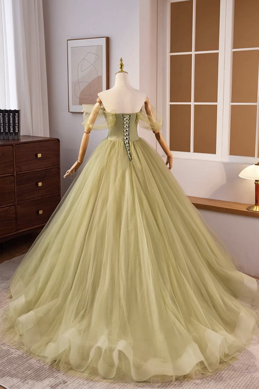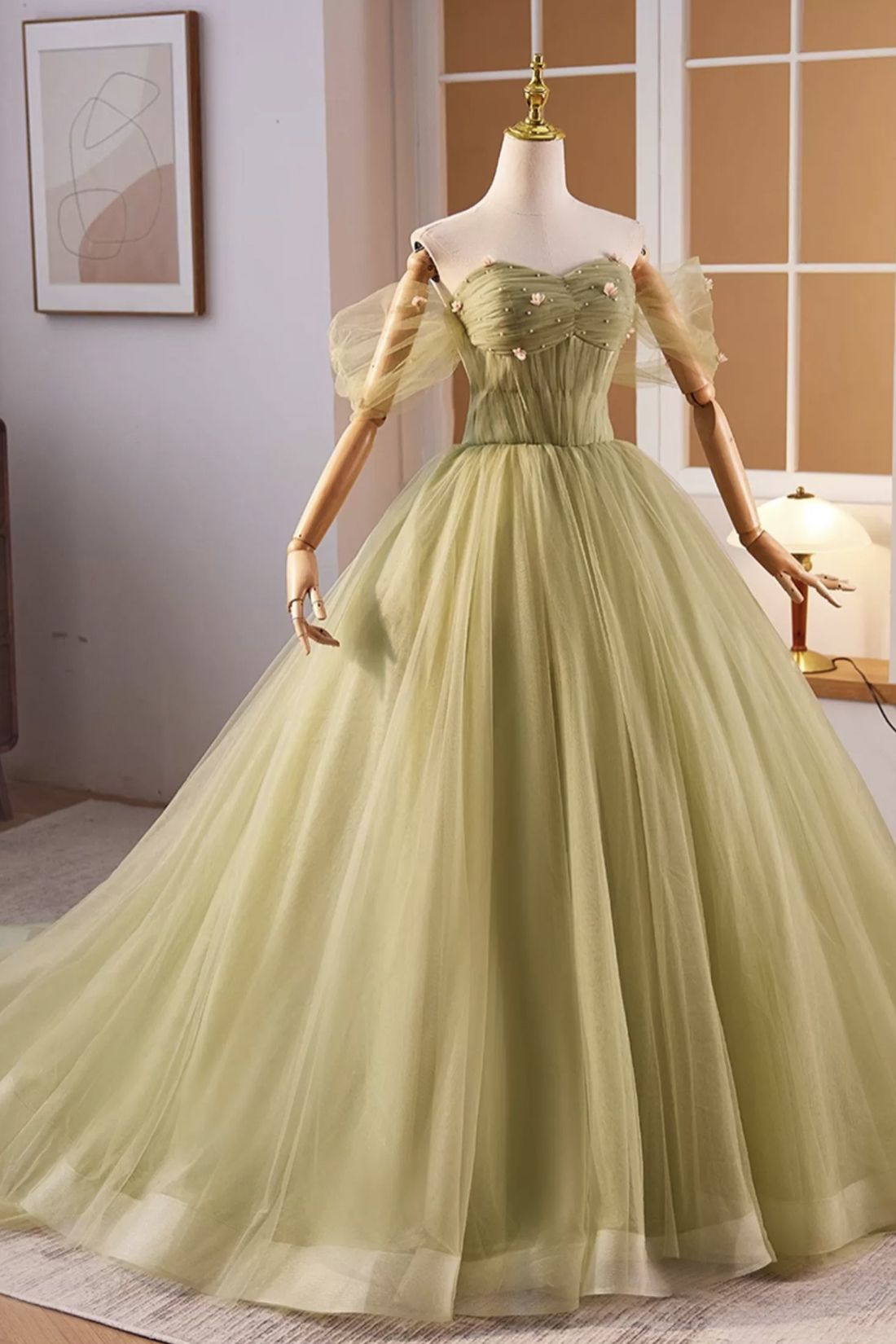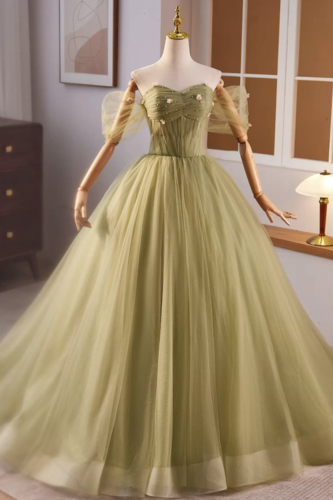 - Green Tulle Long A-Line Prom Dress, Lovely Evening Party Dress -