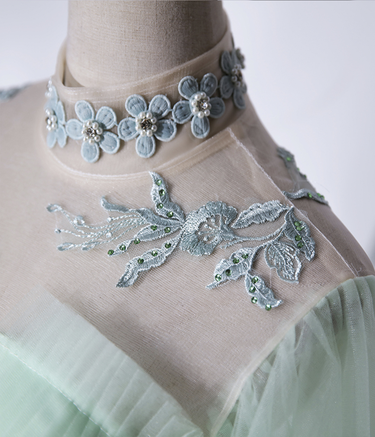 Green Tulle Lace Long A-Line Ball Gown