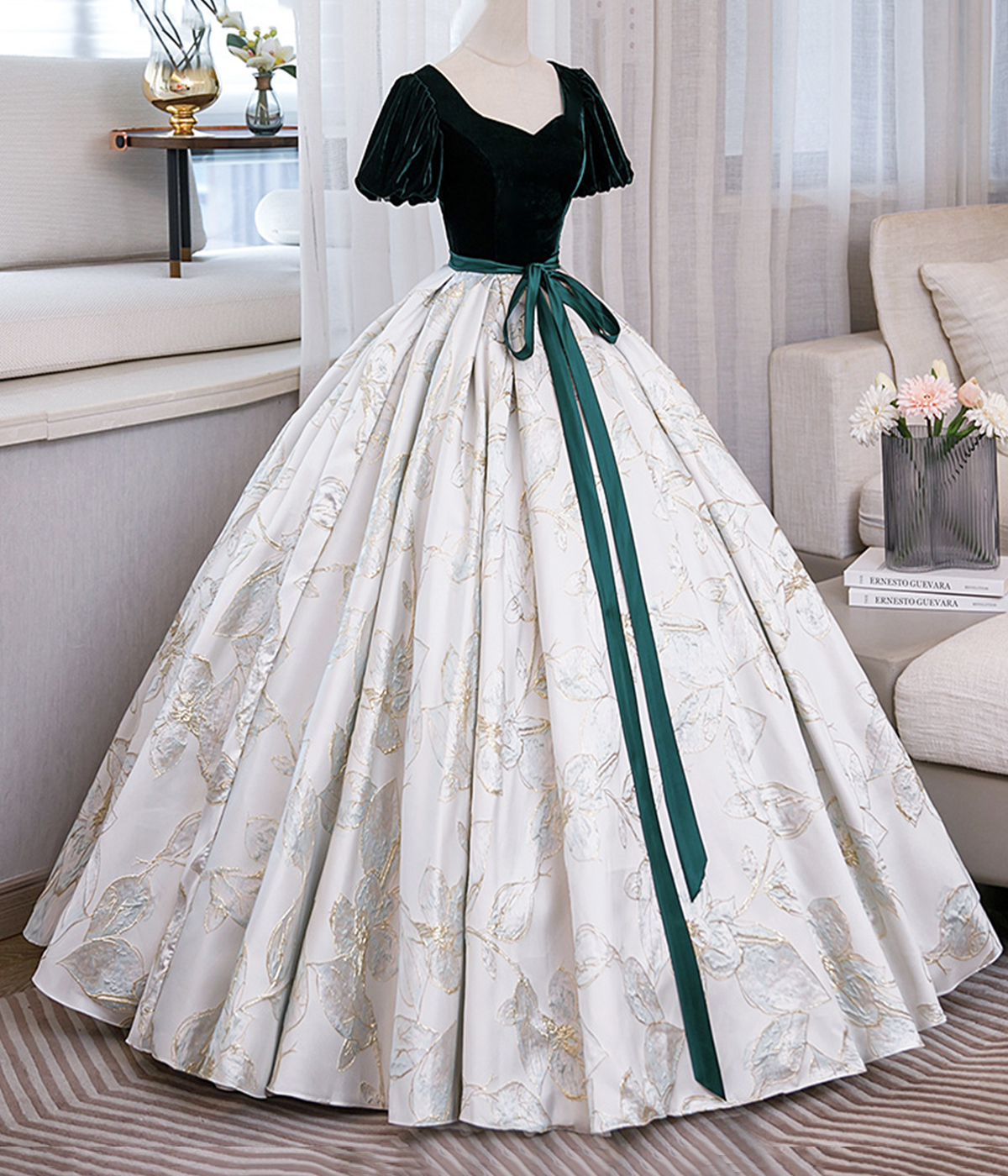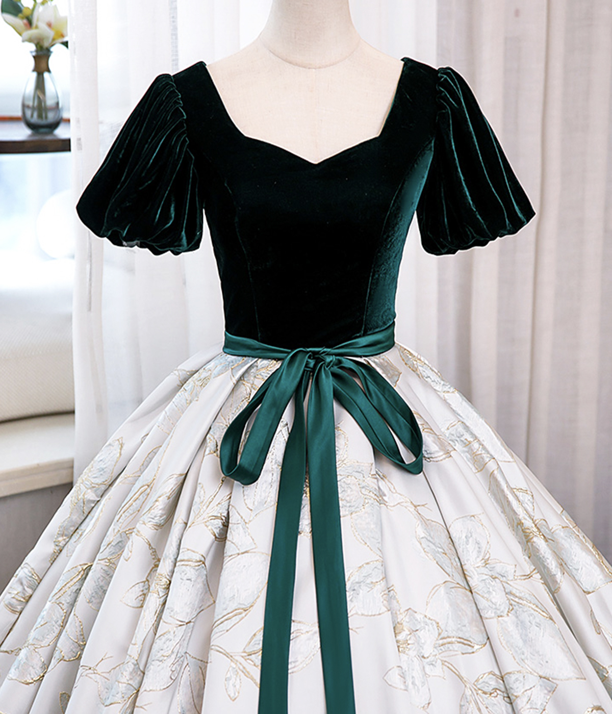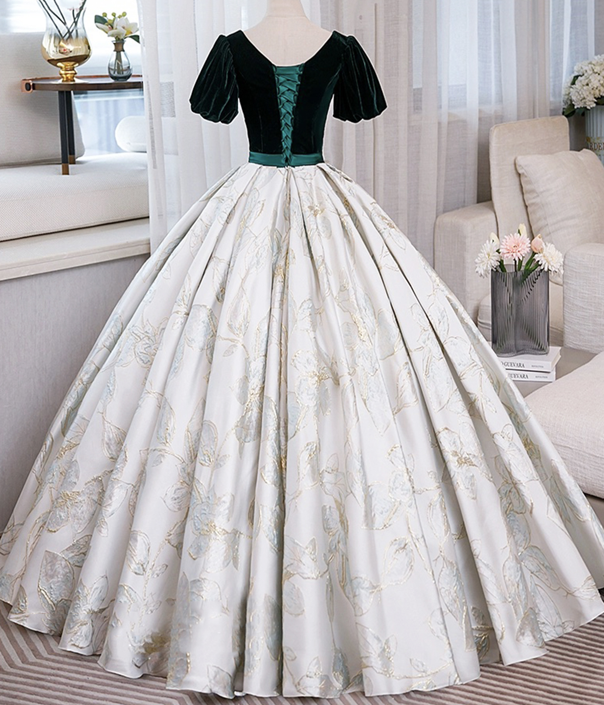 - Green Velvet Floor-Length Printing Prom Dresses -