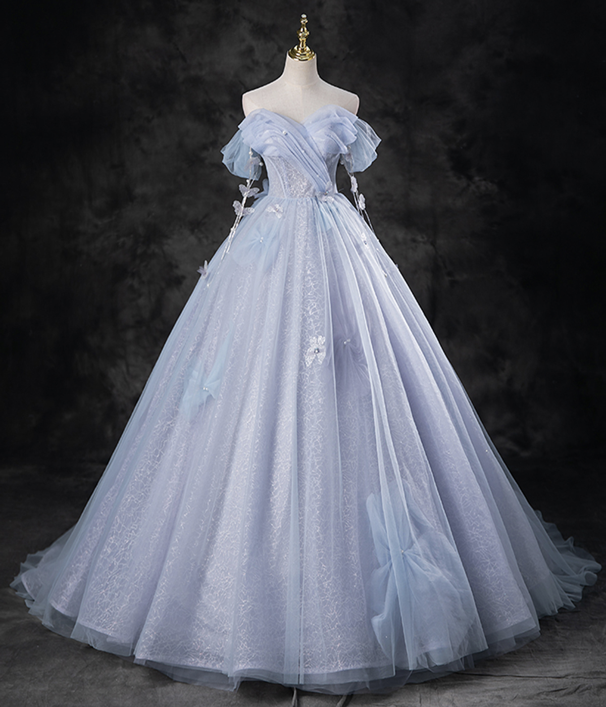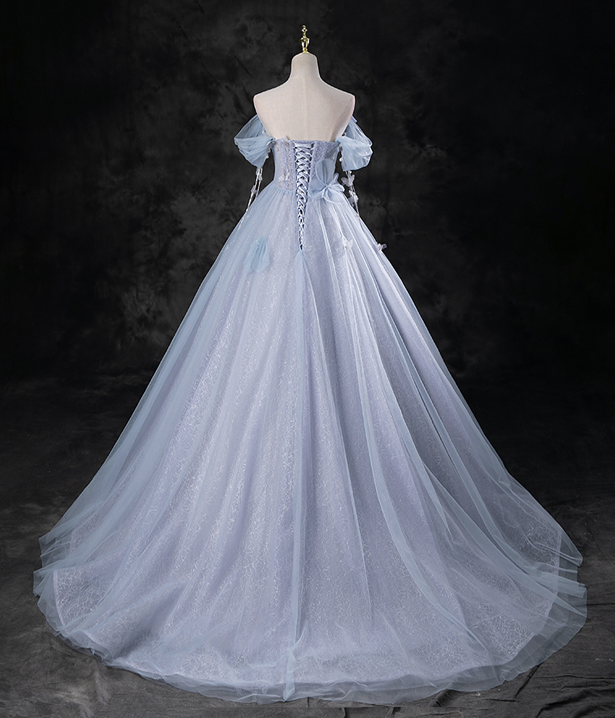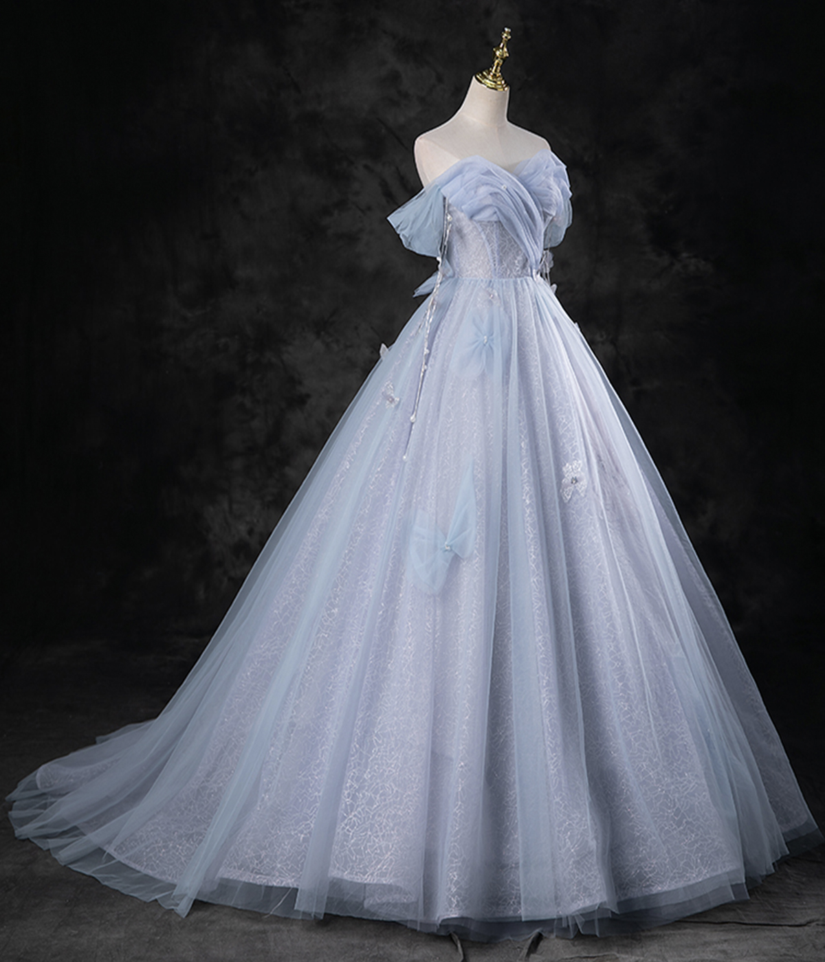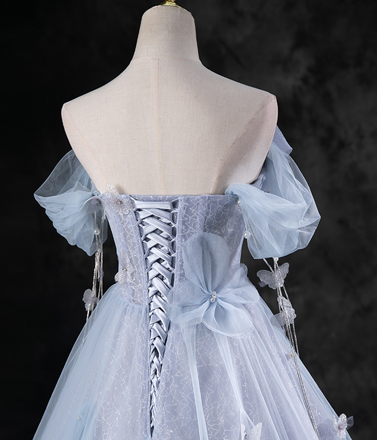- Blue Tulle Long A-Line Prom Dress Party Dress -