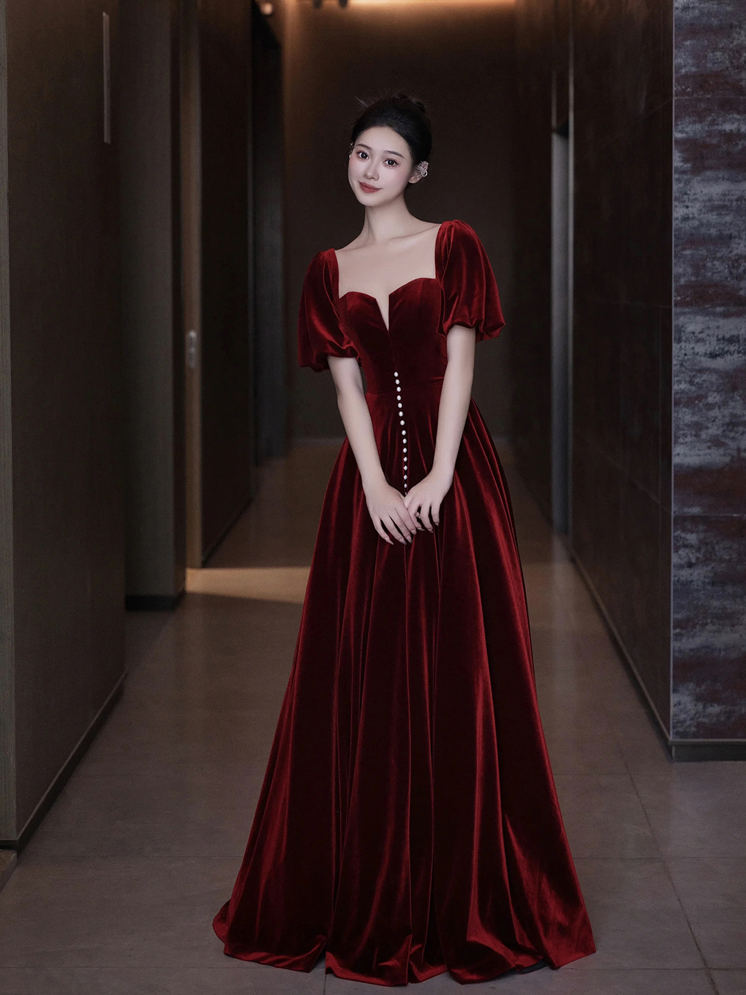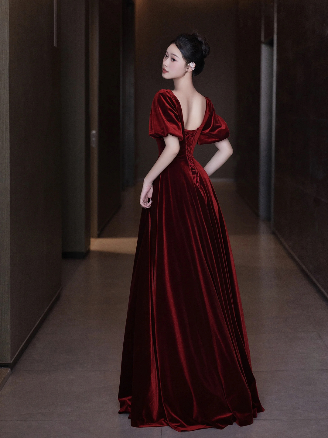 Burgundy Velvet Long A-Line Prom Dress