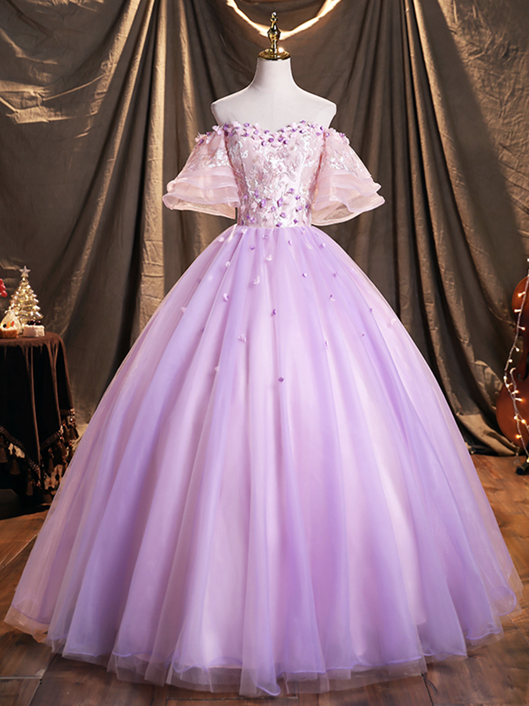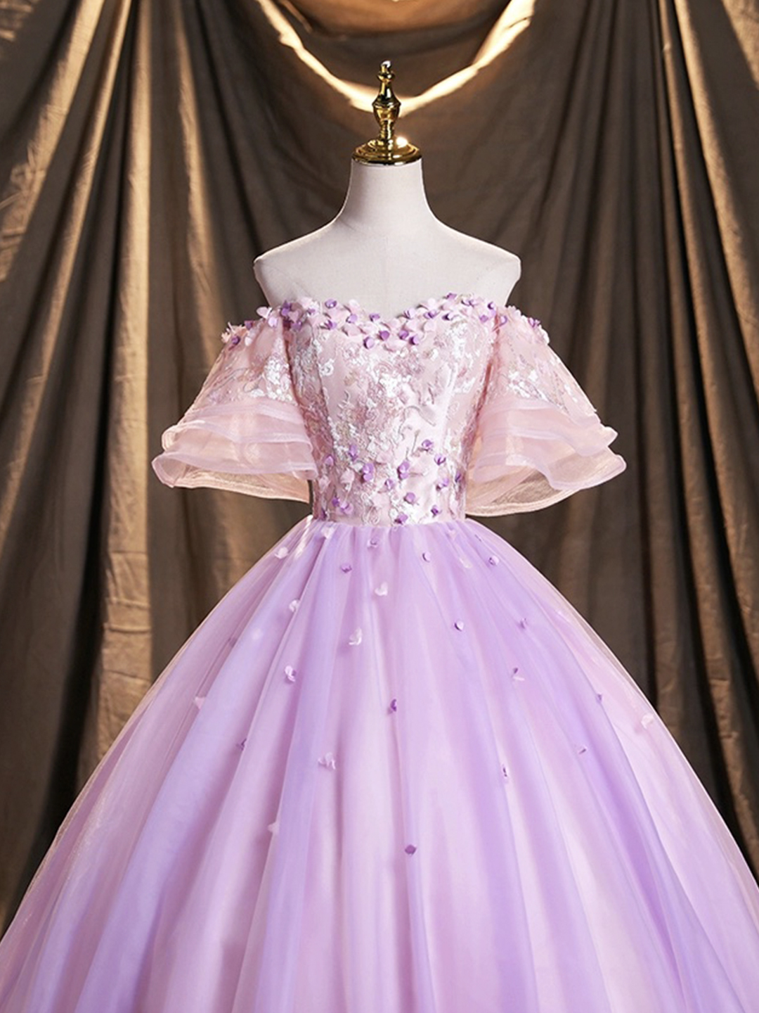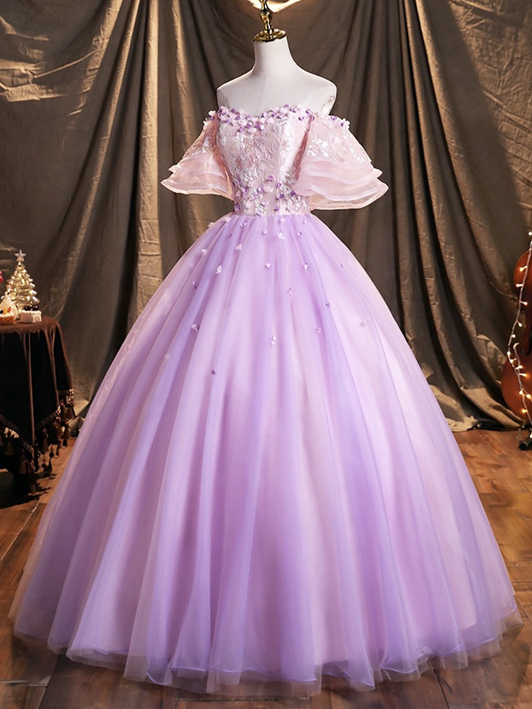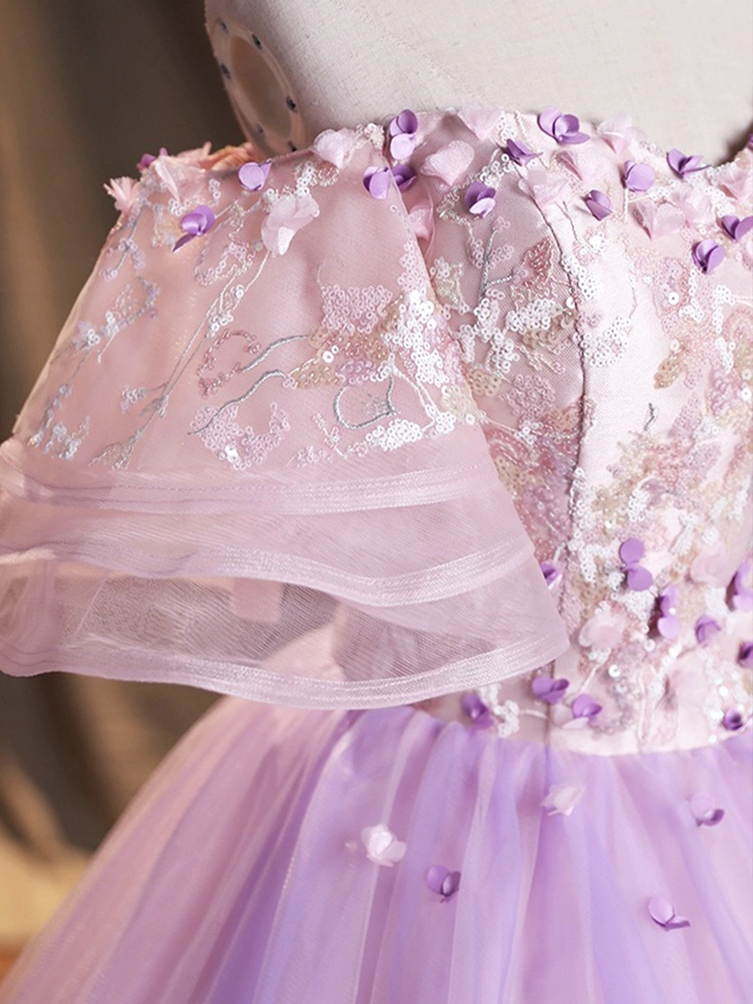 - Purple Tulle Sequins Floor Length Prom Dress -