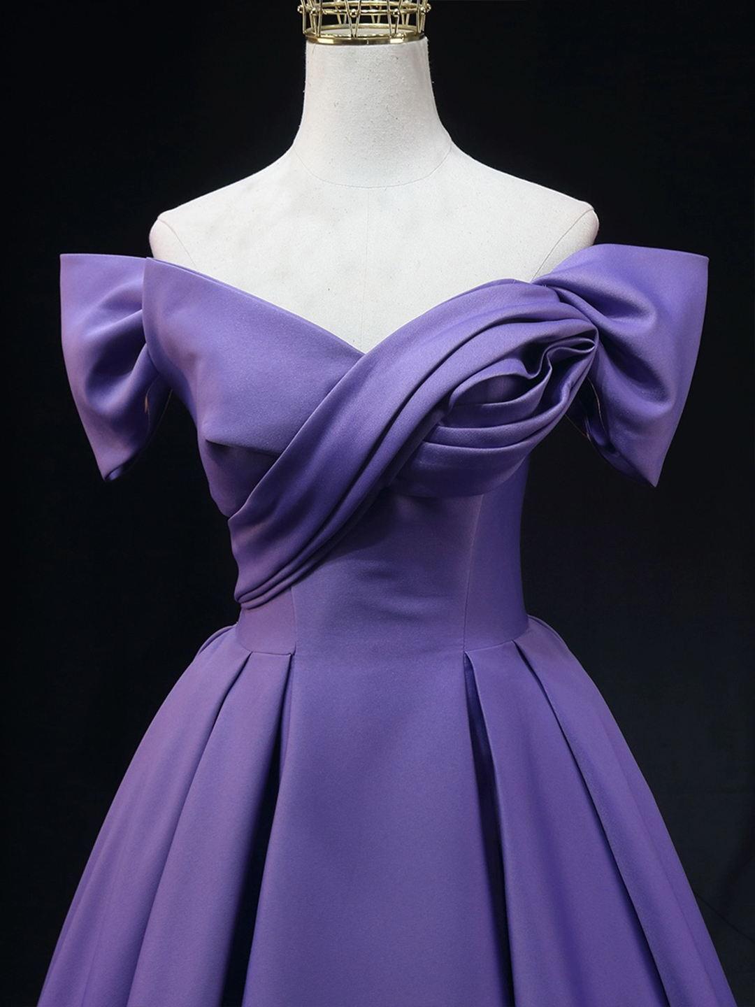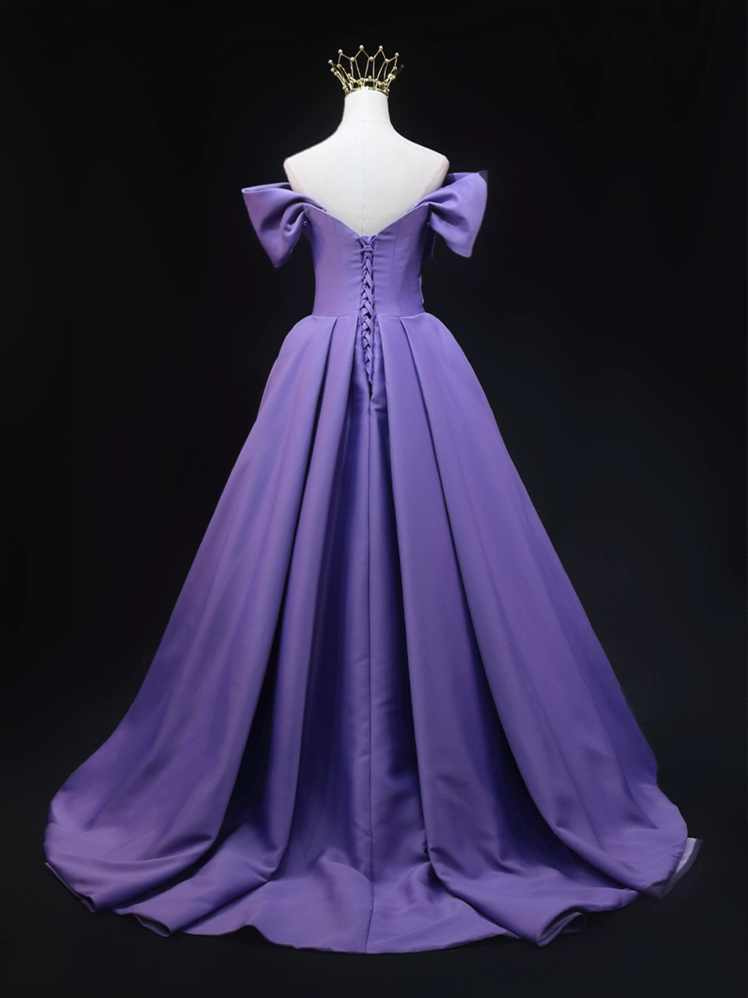 - Purple Satin Long Prom Dress, Off the Shoulder Evening Party Dress -