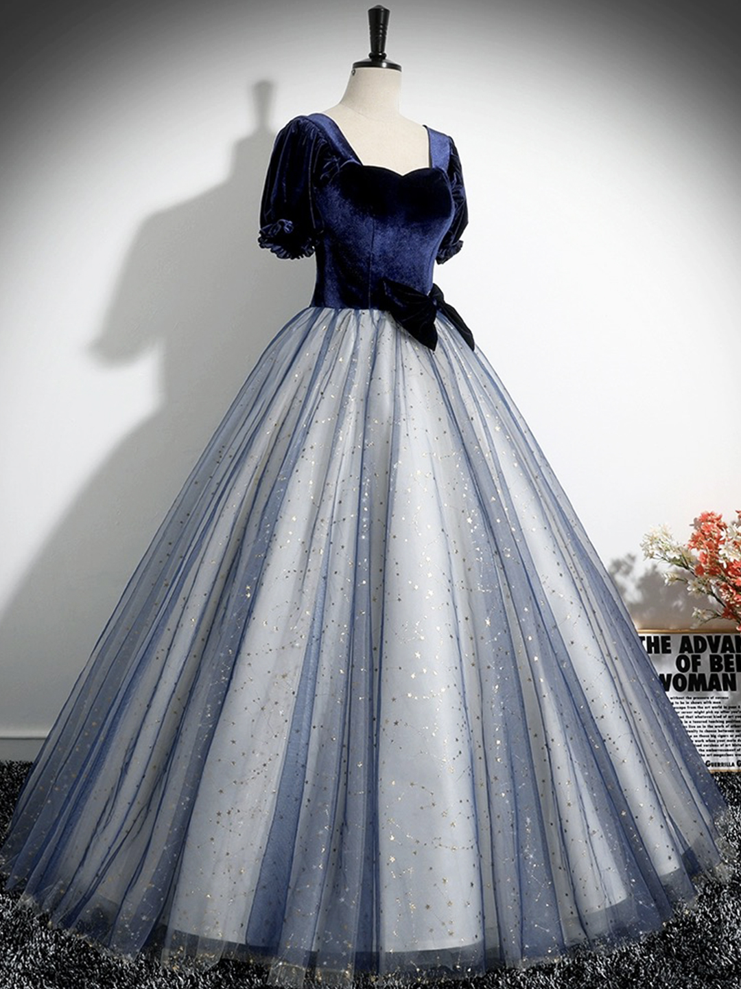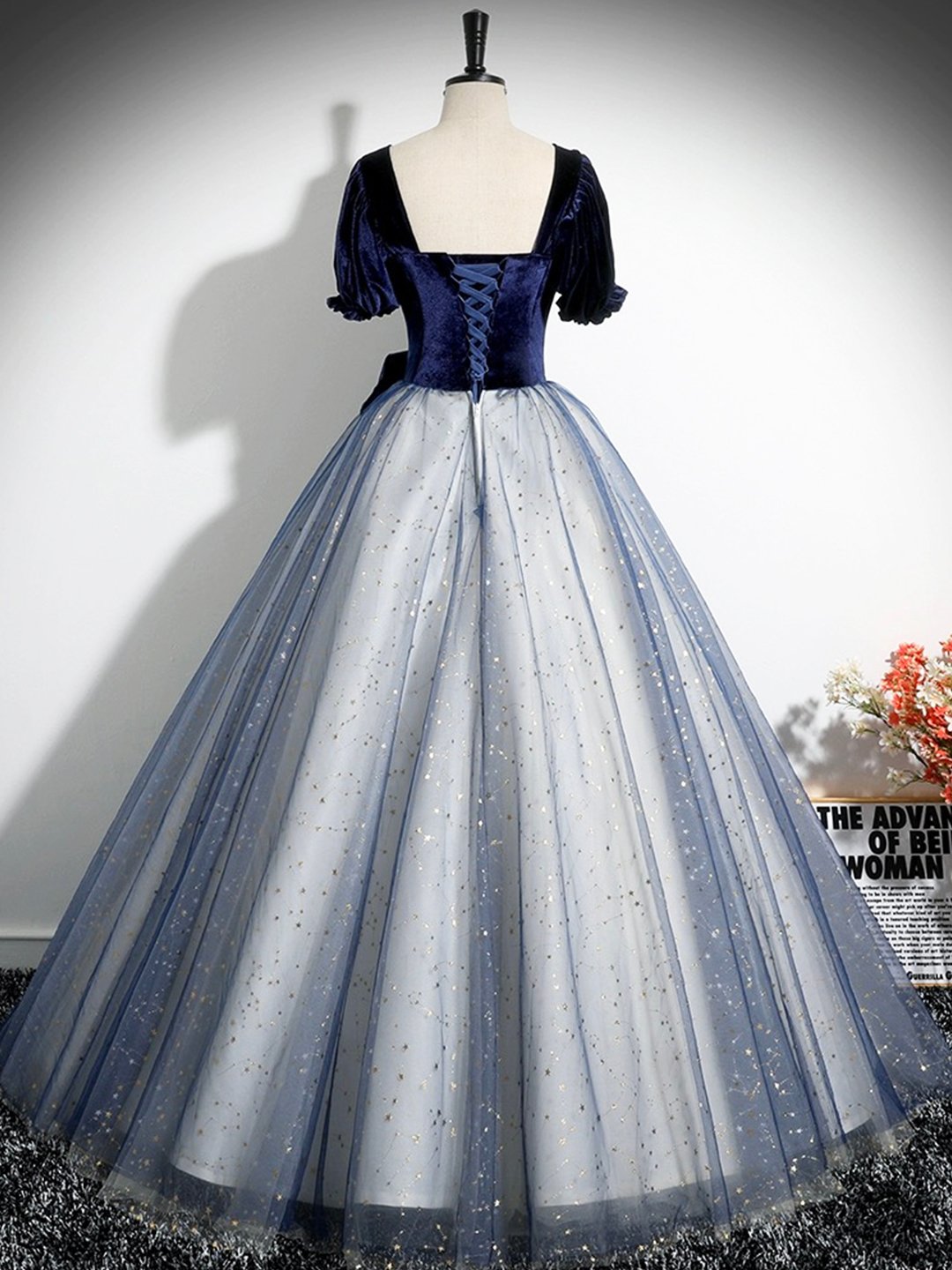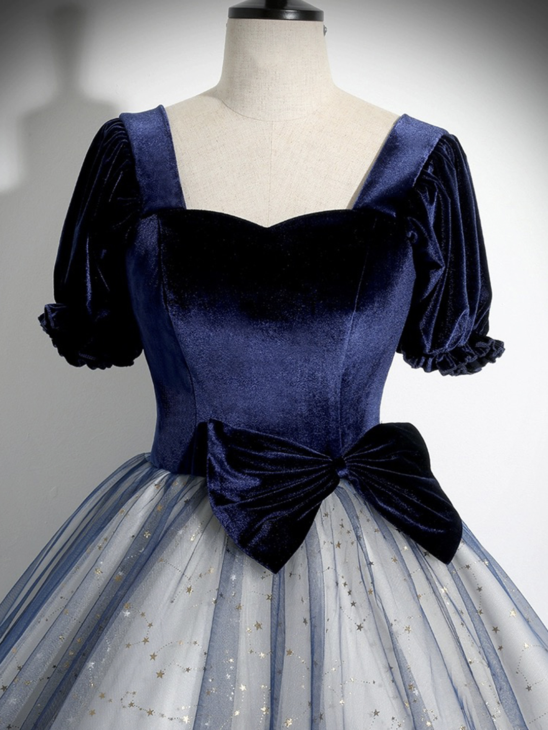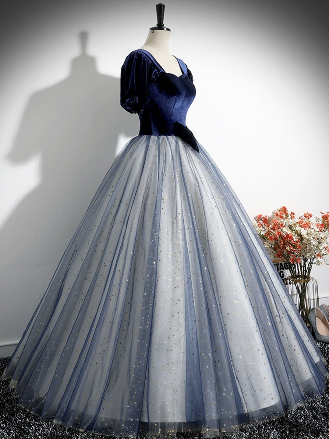 - Blue Velvet Tulle Long Prom Dress -