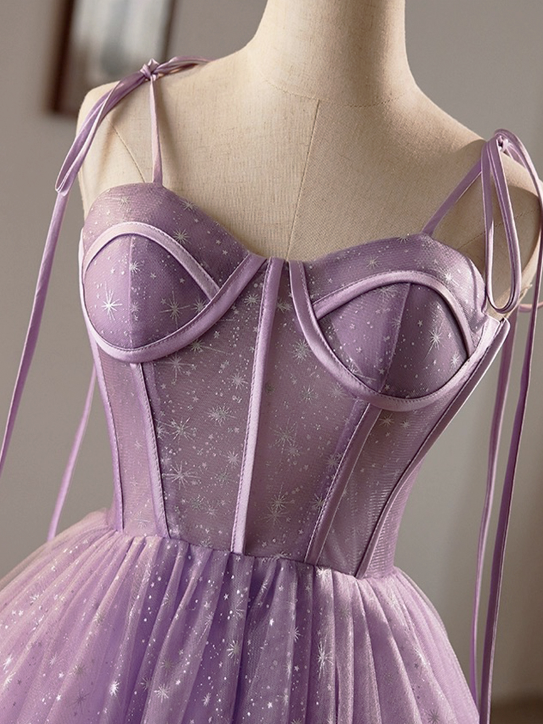 - Purple Tulle A-Line Knee Length Lovely Spaghetti Strap Party Dress -