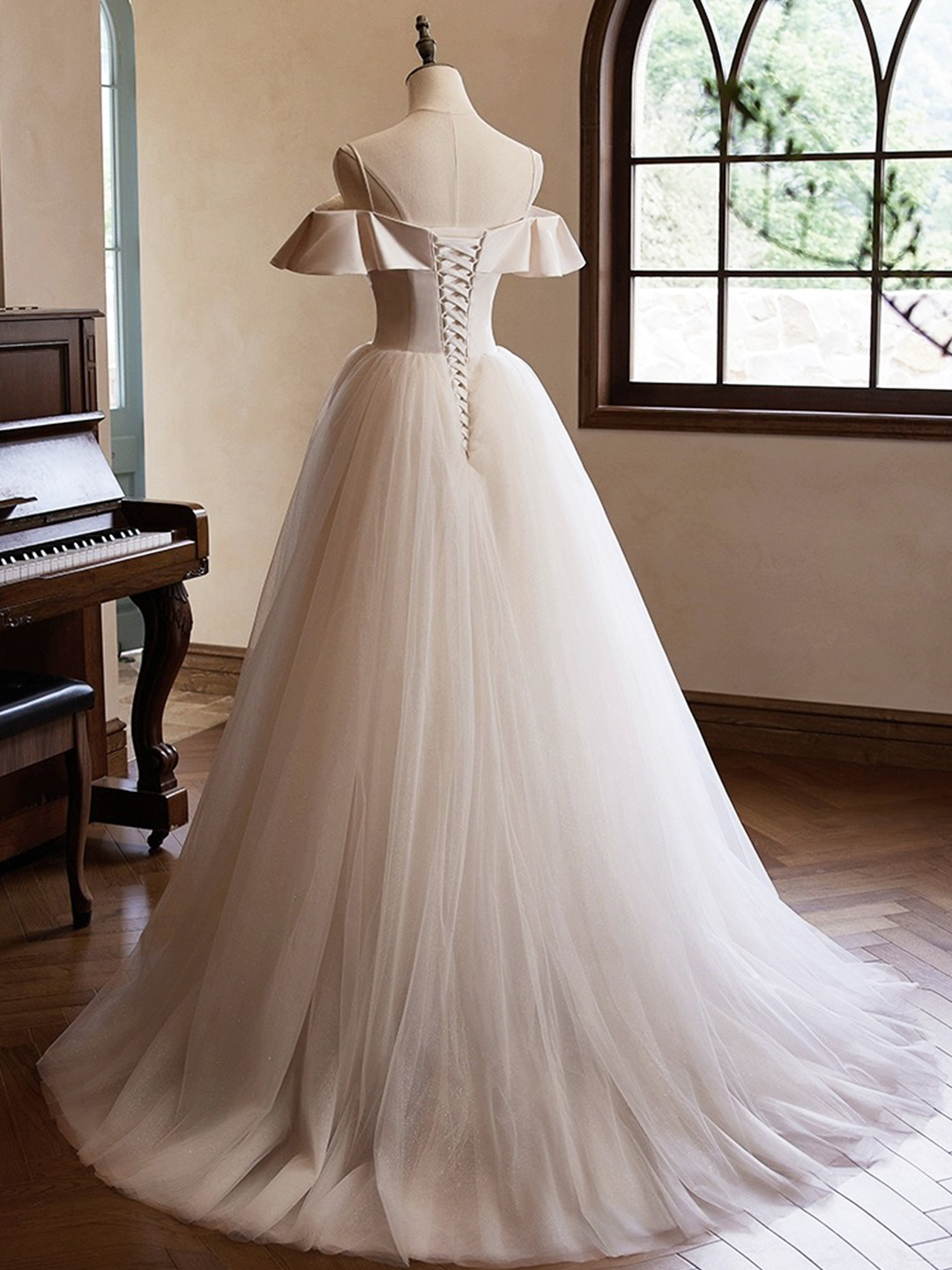 - Champagne Spaghetti Straps Floor Length Prom Dress -