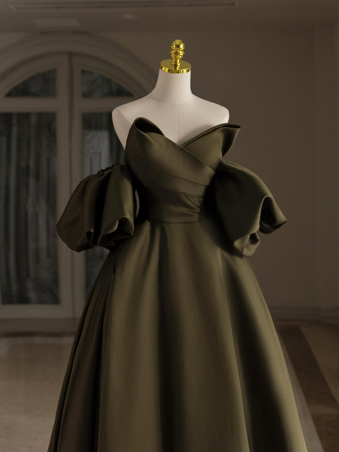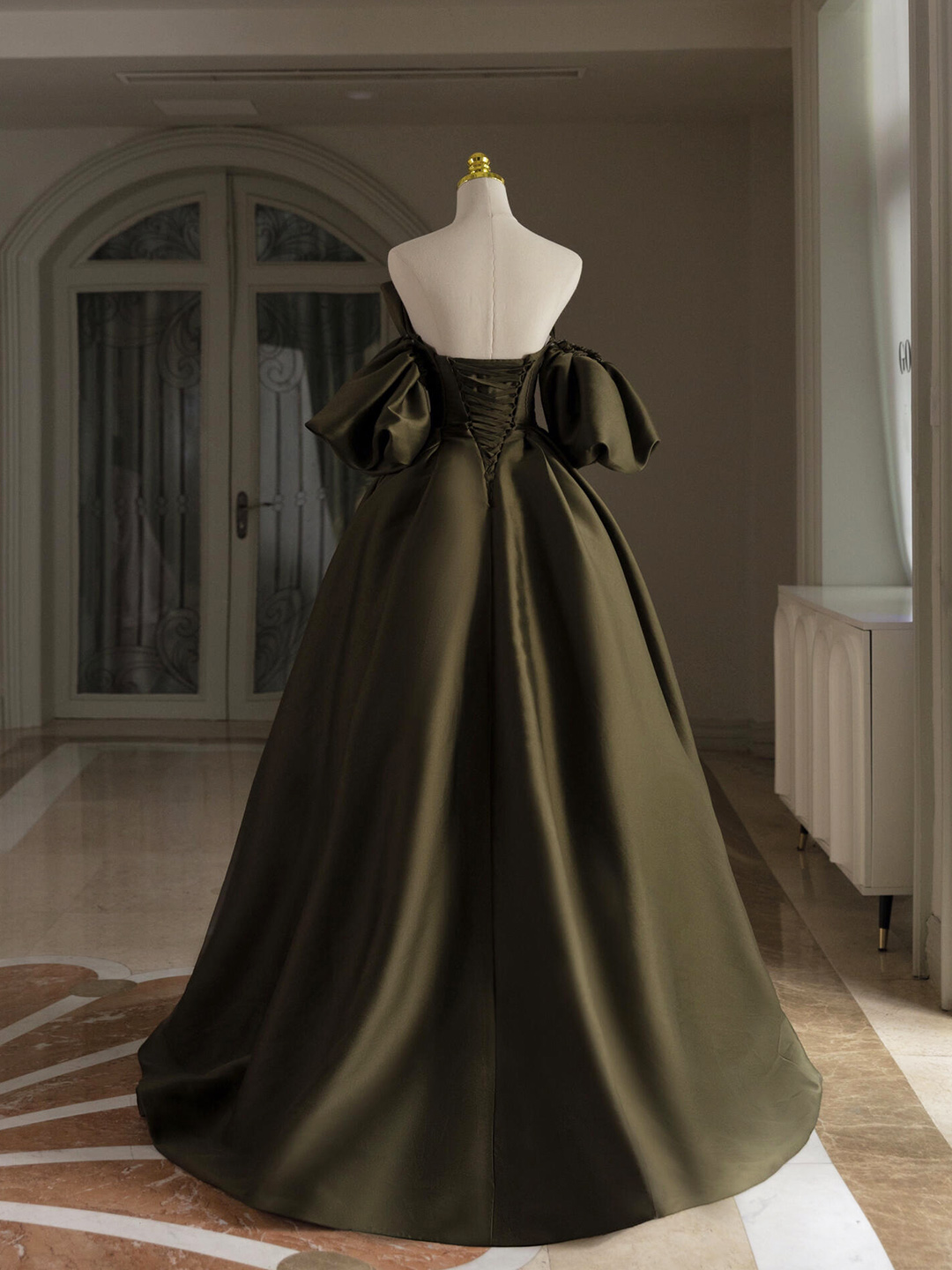 - Dark Green Satin Floor Length Prom Dress -