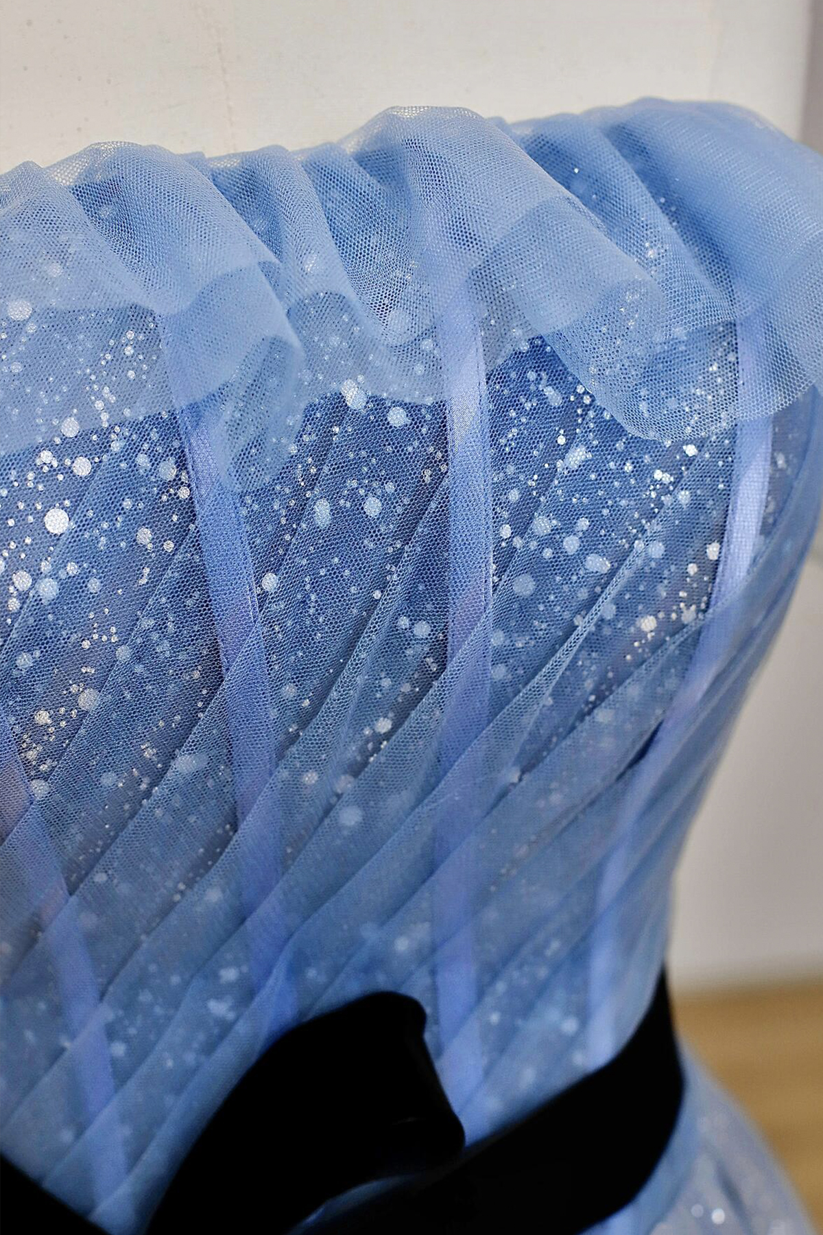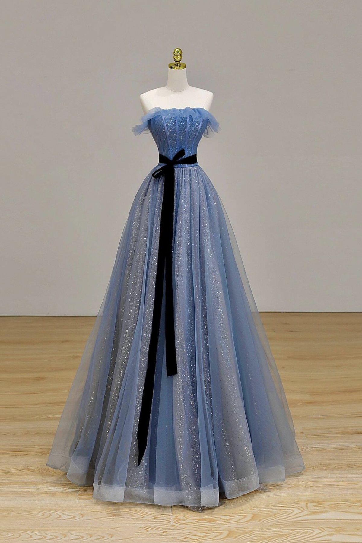 - Blue Strapless A-Line Tulle Long Prom Party Dress -