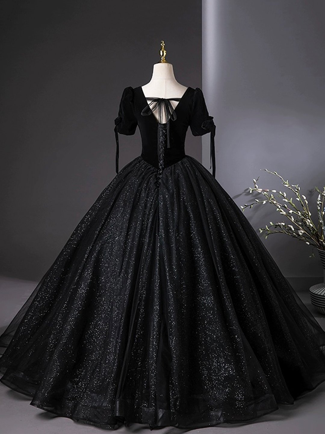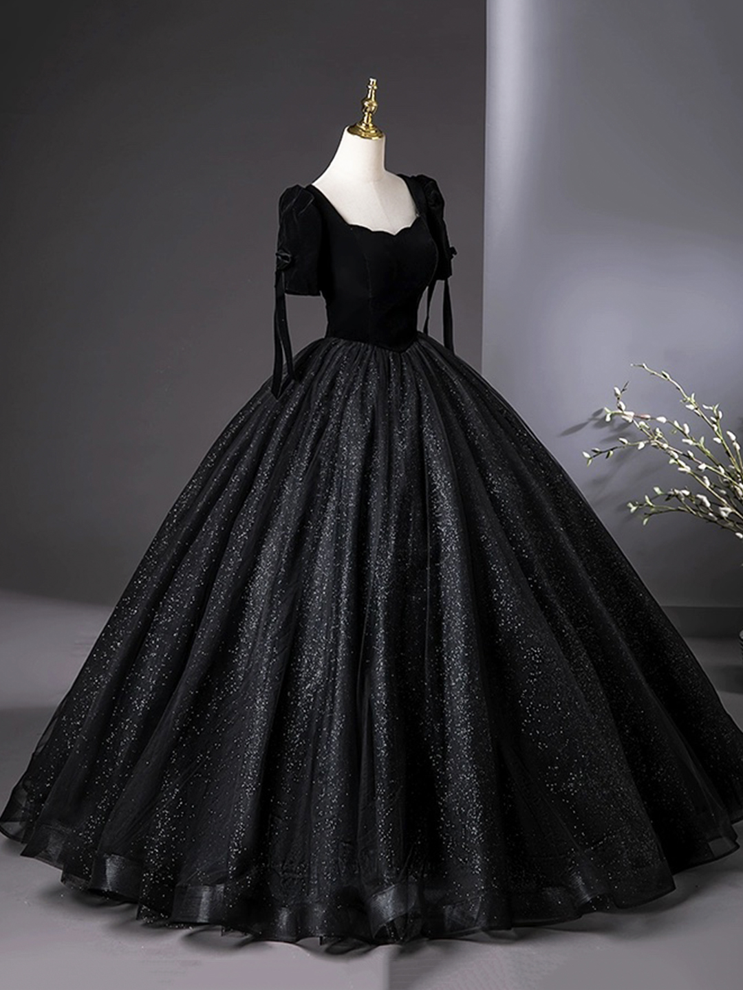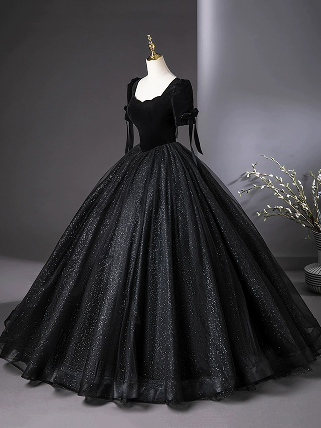 - Black Velvet and Tulle Long Prom Dress, Elegant A-Line Party Dress -