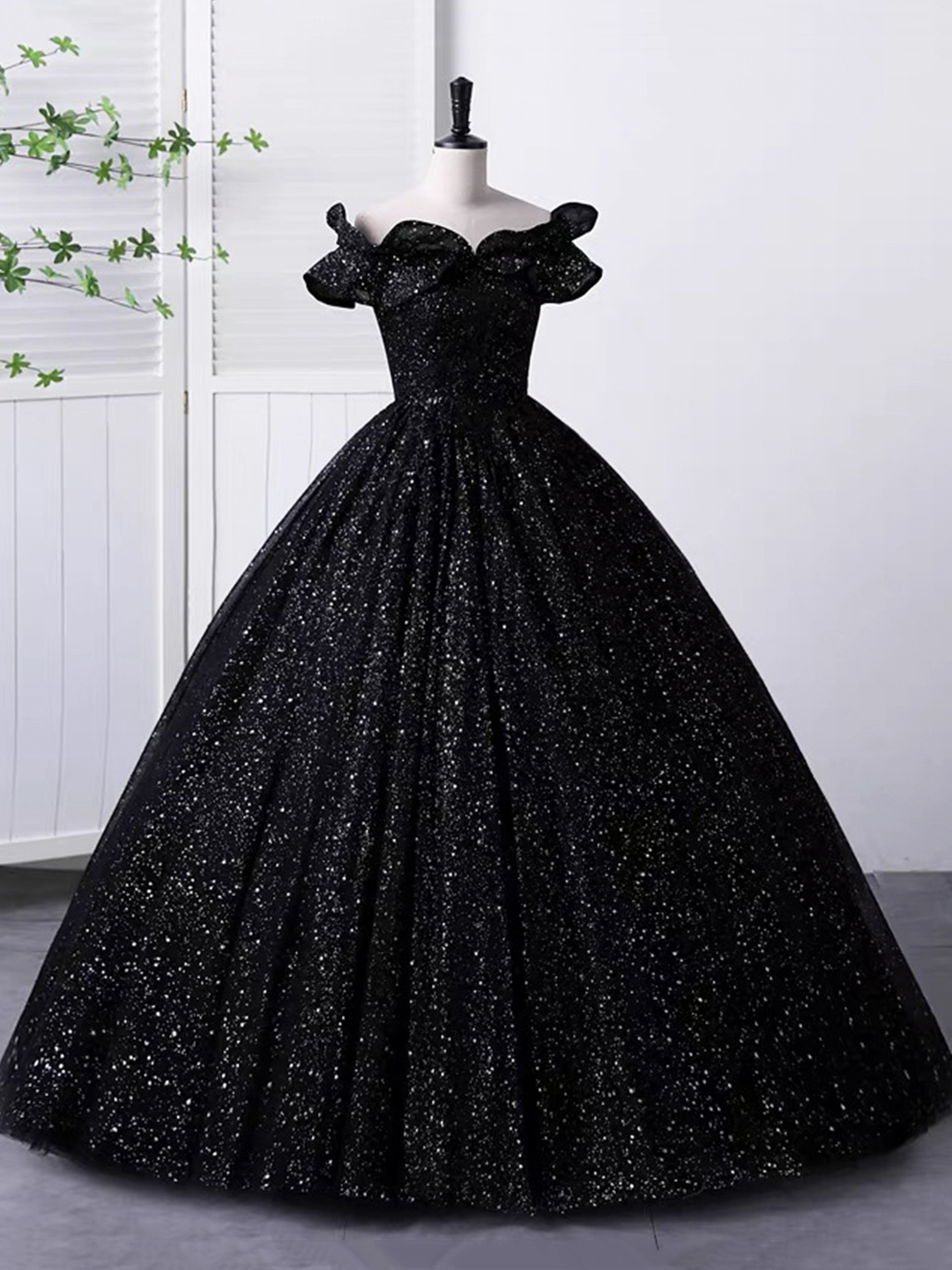 - Black Tulle Long Prom Dress, Off the Shoulder A-Line Evening Party Dress -