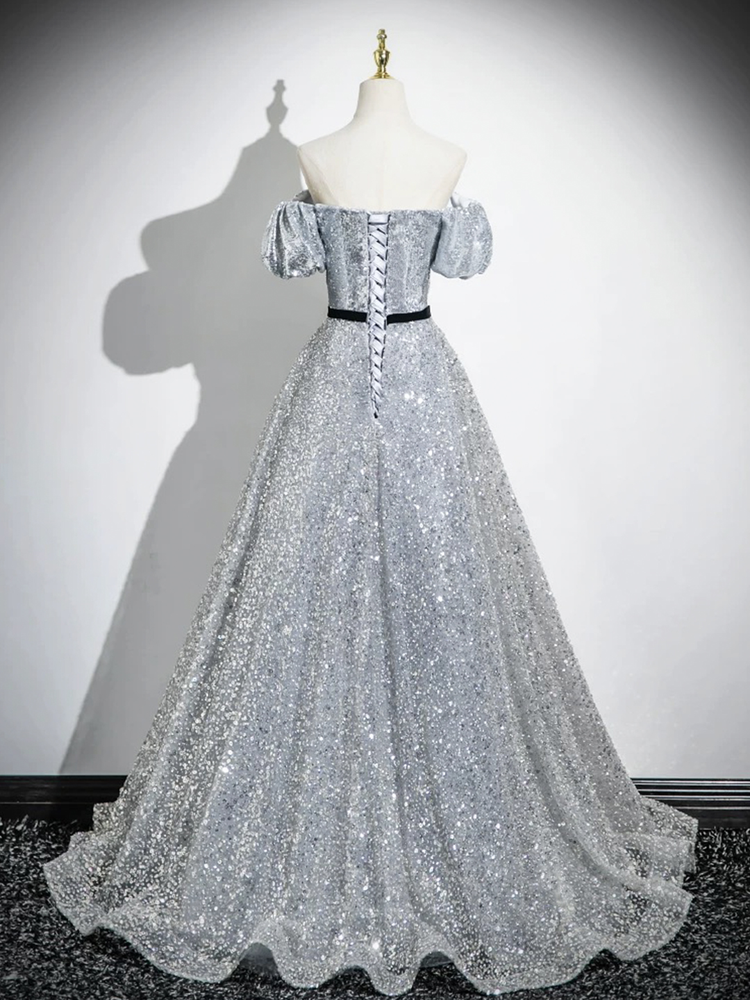 - Sparkly Silver Sequins Floor Length Prom Party Dress -