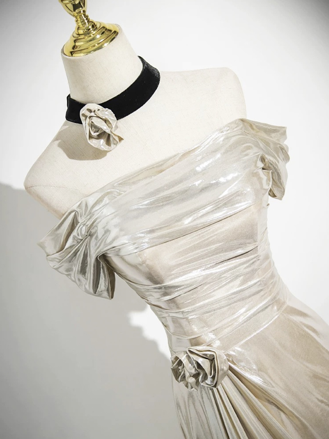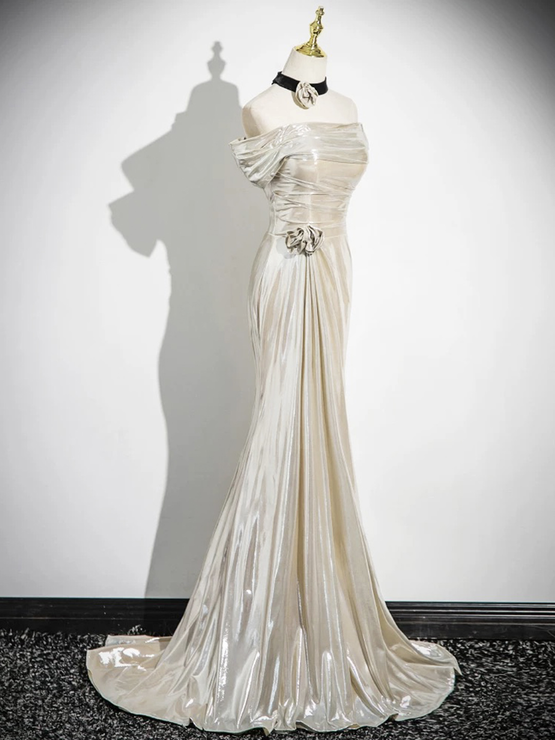 - Mermaid Off the Shoulder Prom Dress, Champagne Floor Length Party Dress -
