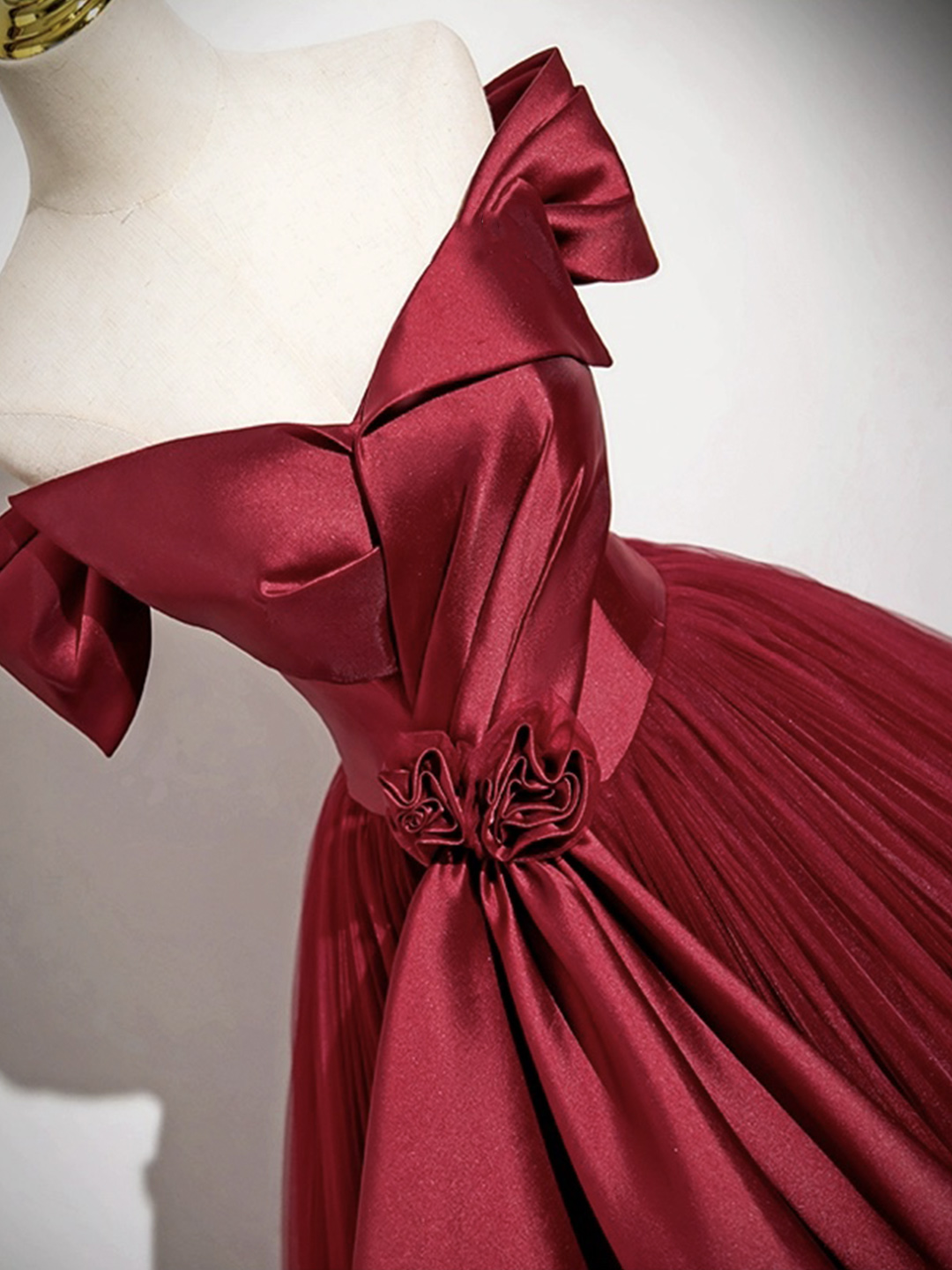 - Burgundy Satin Tulle Floor Length Formal Prom Dress -