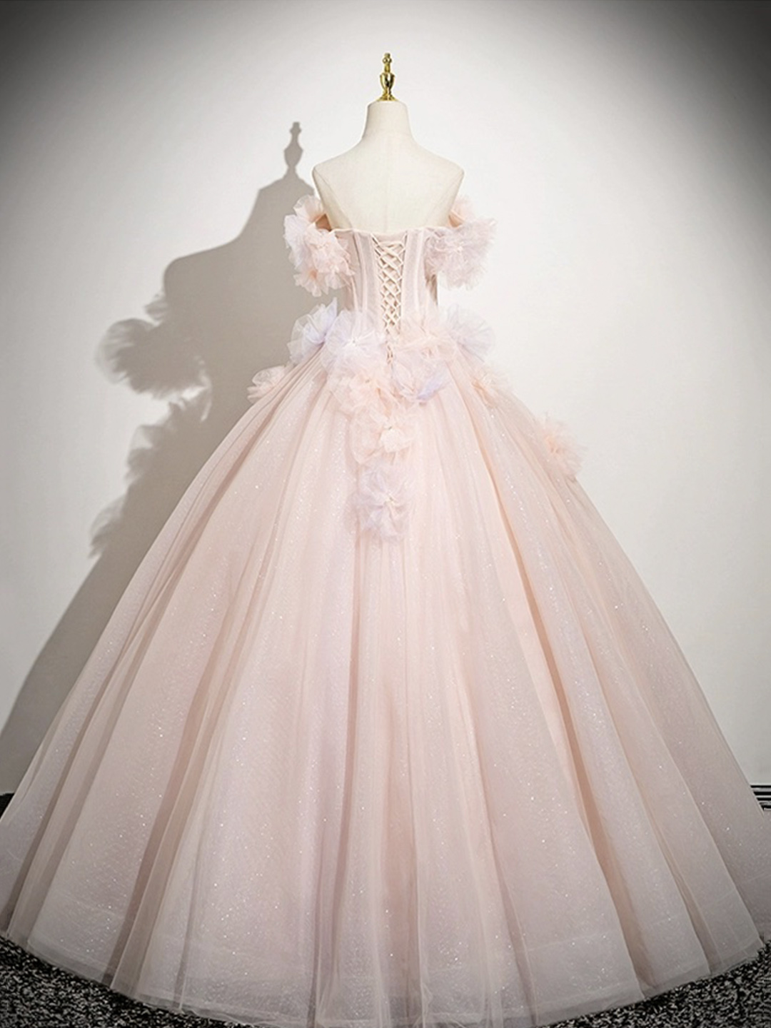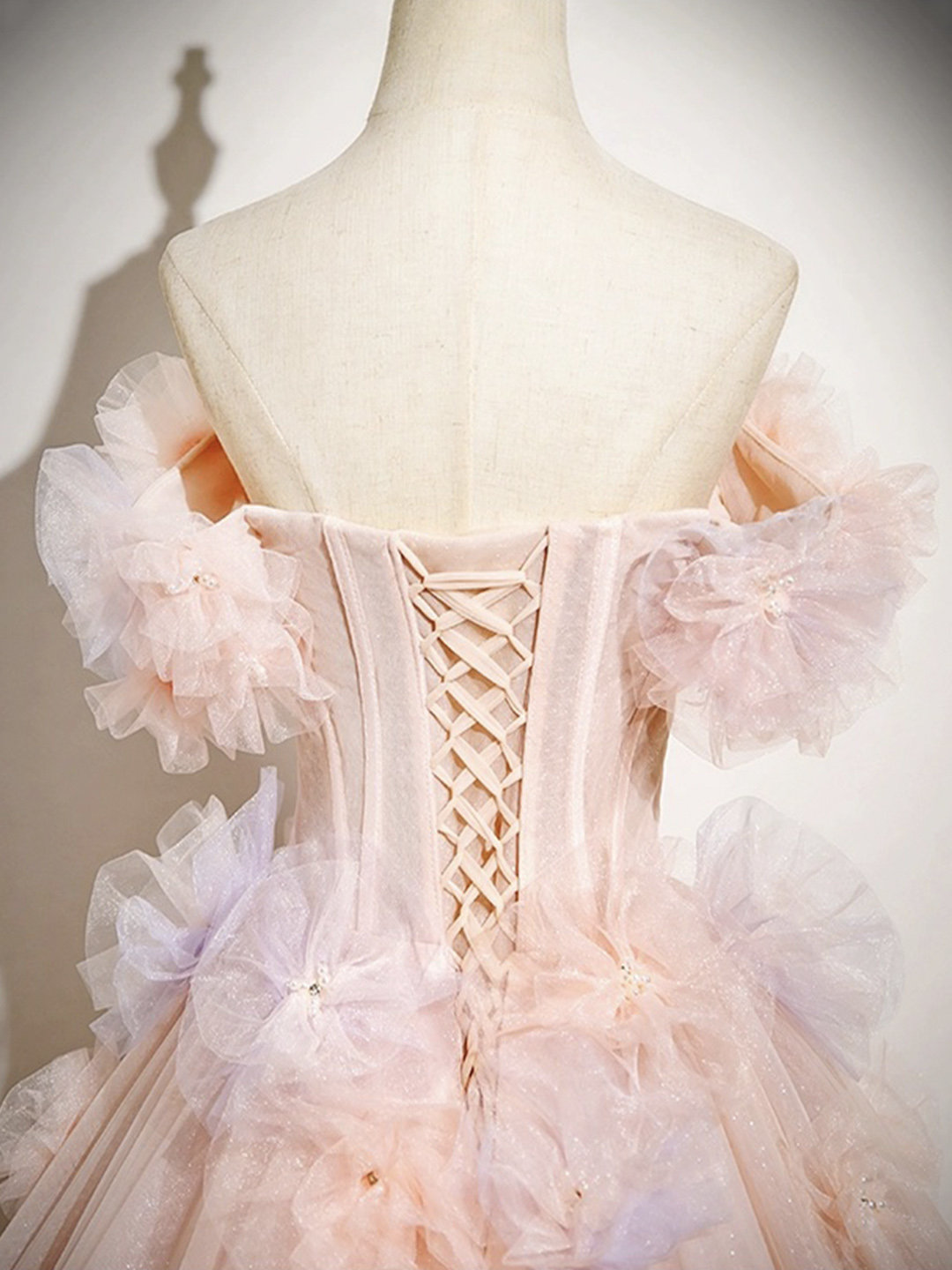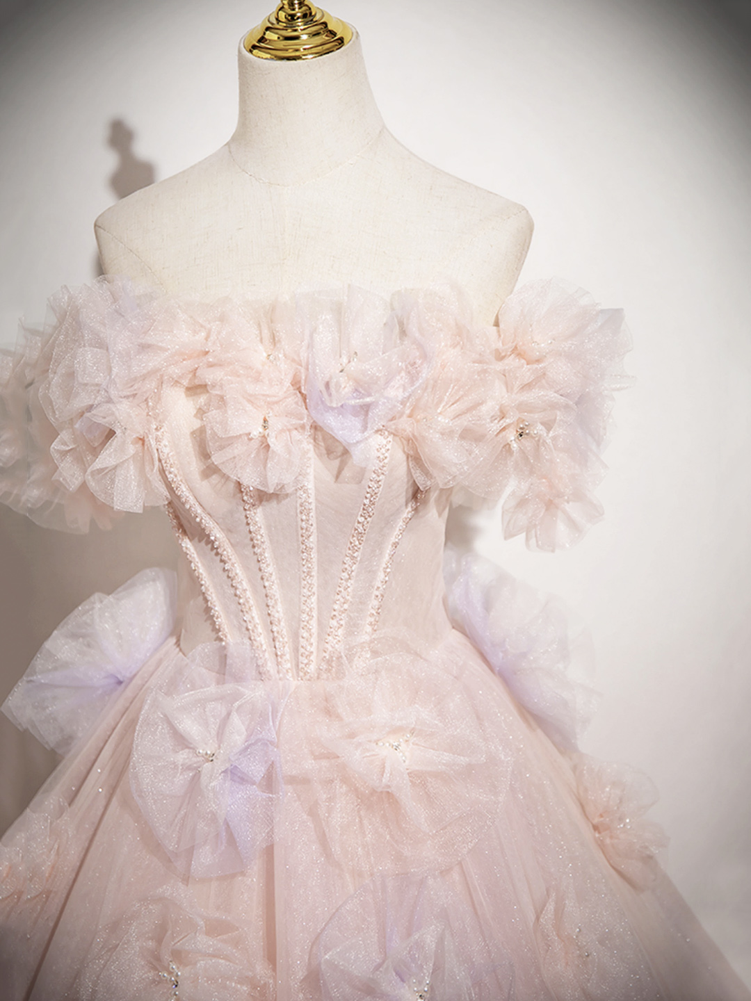 - Pink Tulle Long Prom Dress, Lovely A-Line Evening Sweet 16 Dress -