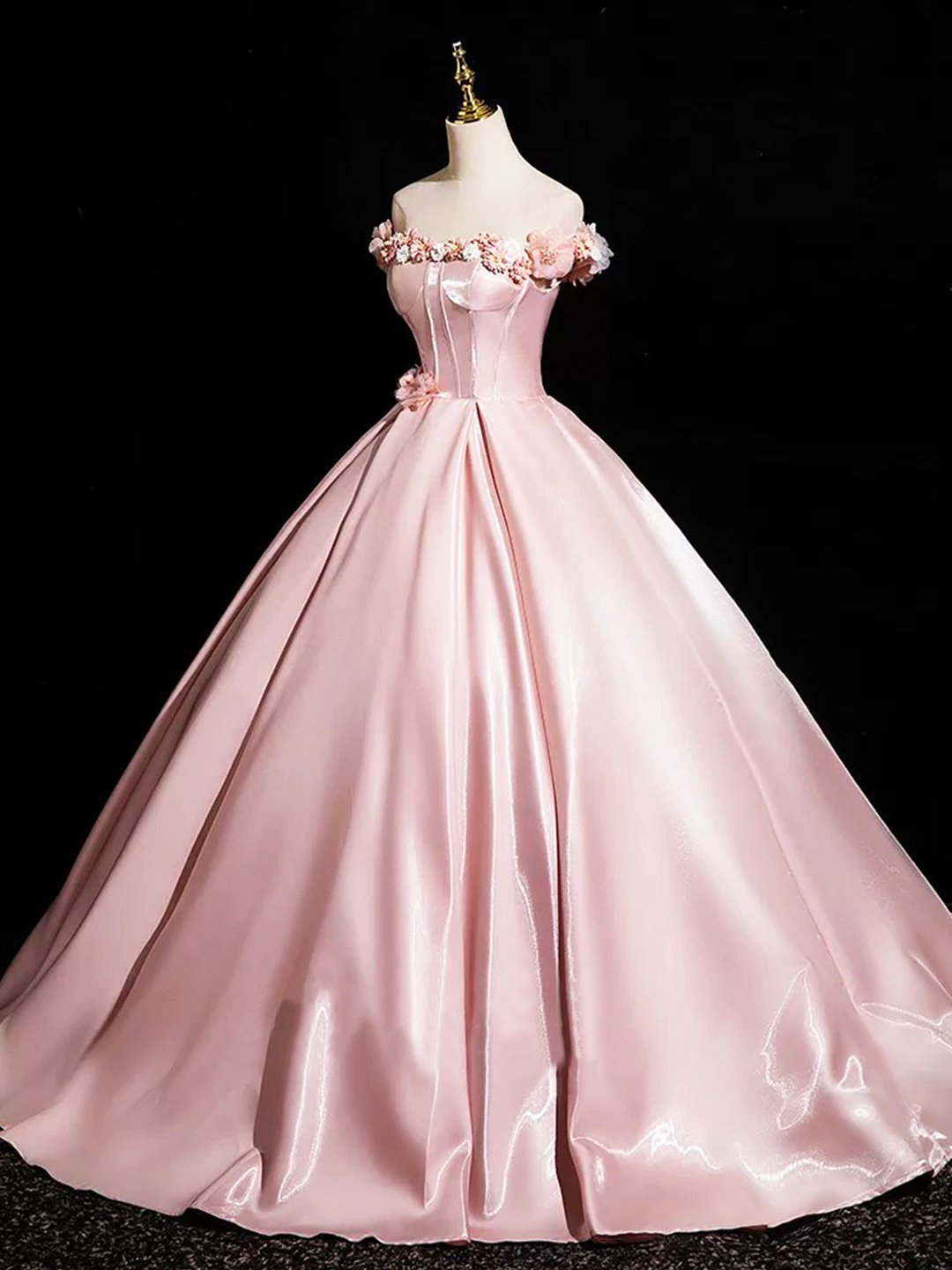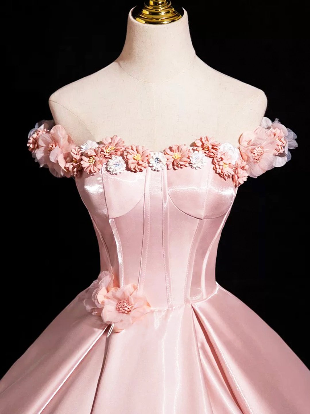 - Pink Satin Long Prom Dress, Off the Shoulder Party Dress -