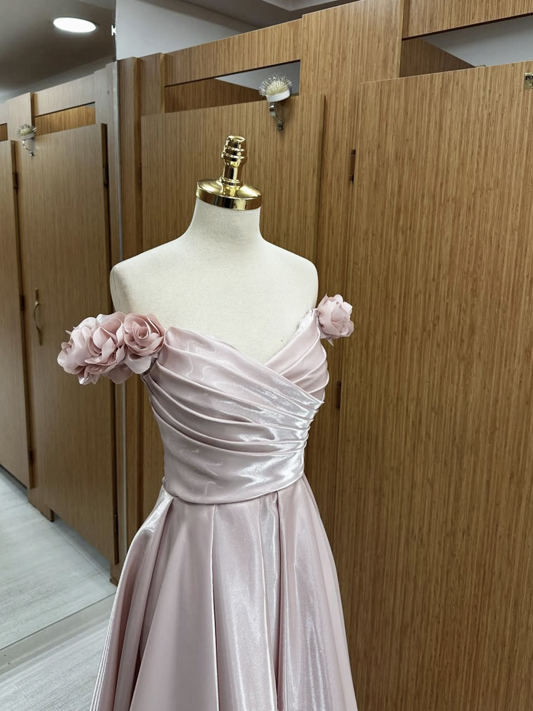 - Pink Satin Long Prom Dress, Beautiful A-Line Evening Party Dress -