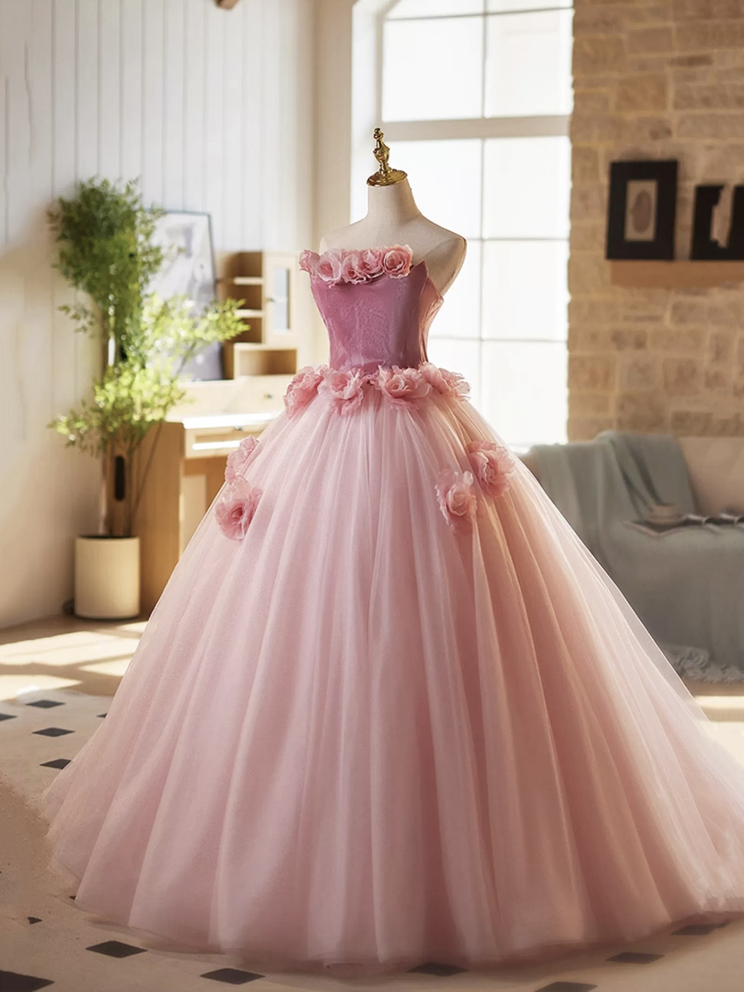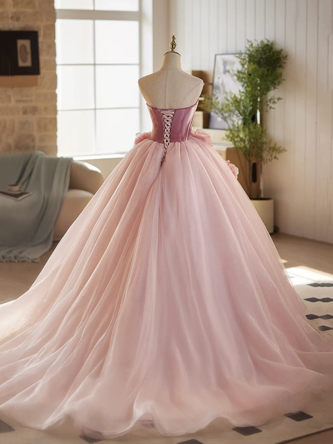 Pink Velvet and Tulle Long Prom Party Dress