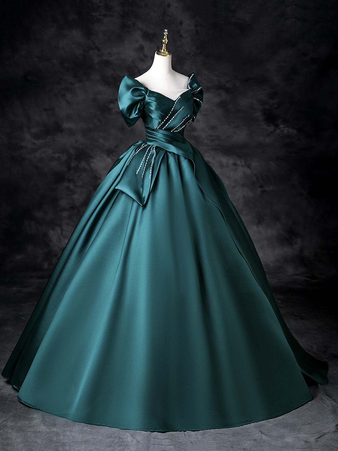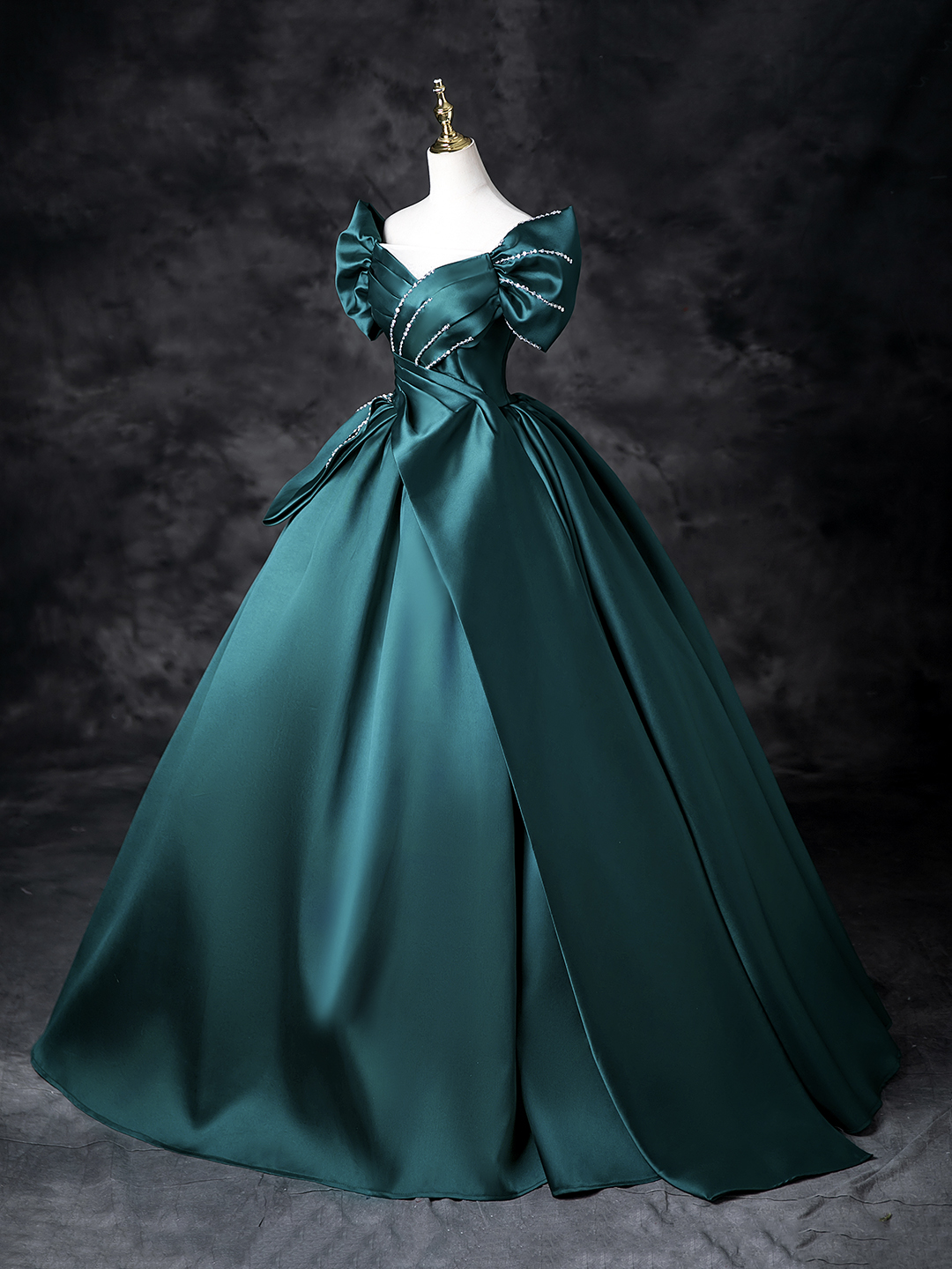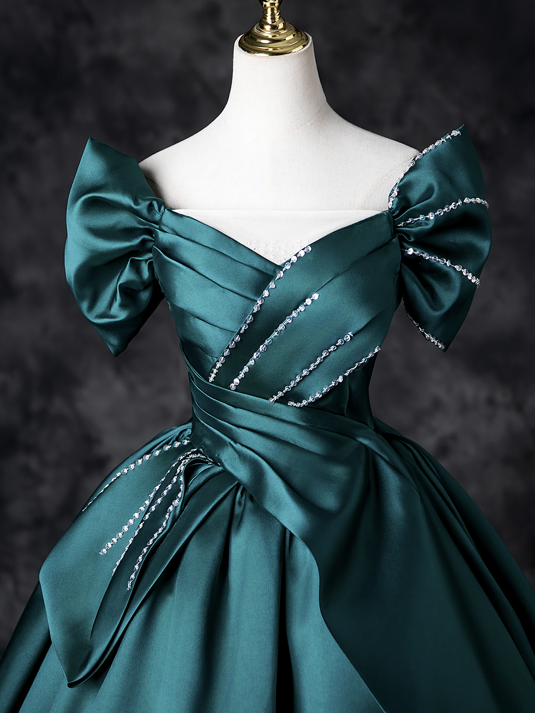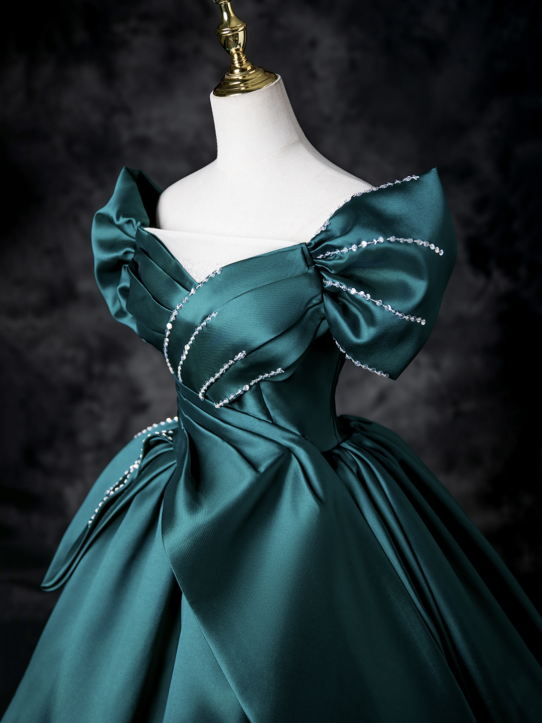 - Green Satin Long Prom Dress, Elegant Off the Shoulder Evening Party Dress -