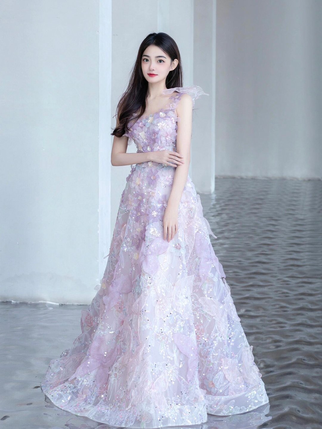 - A-Line Tulle Flowers Long Prom Dress, Beautiful Evening Party Dress -