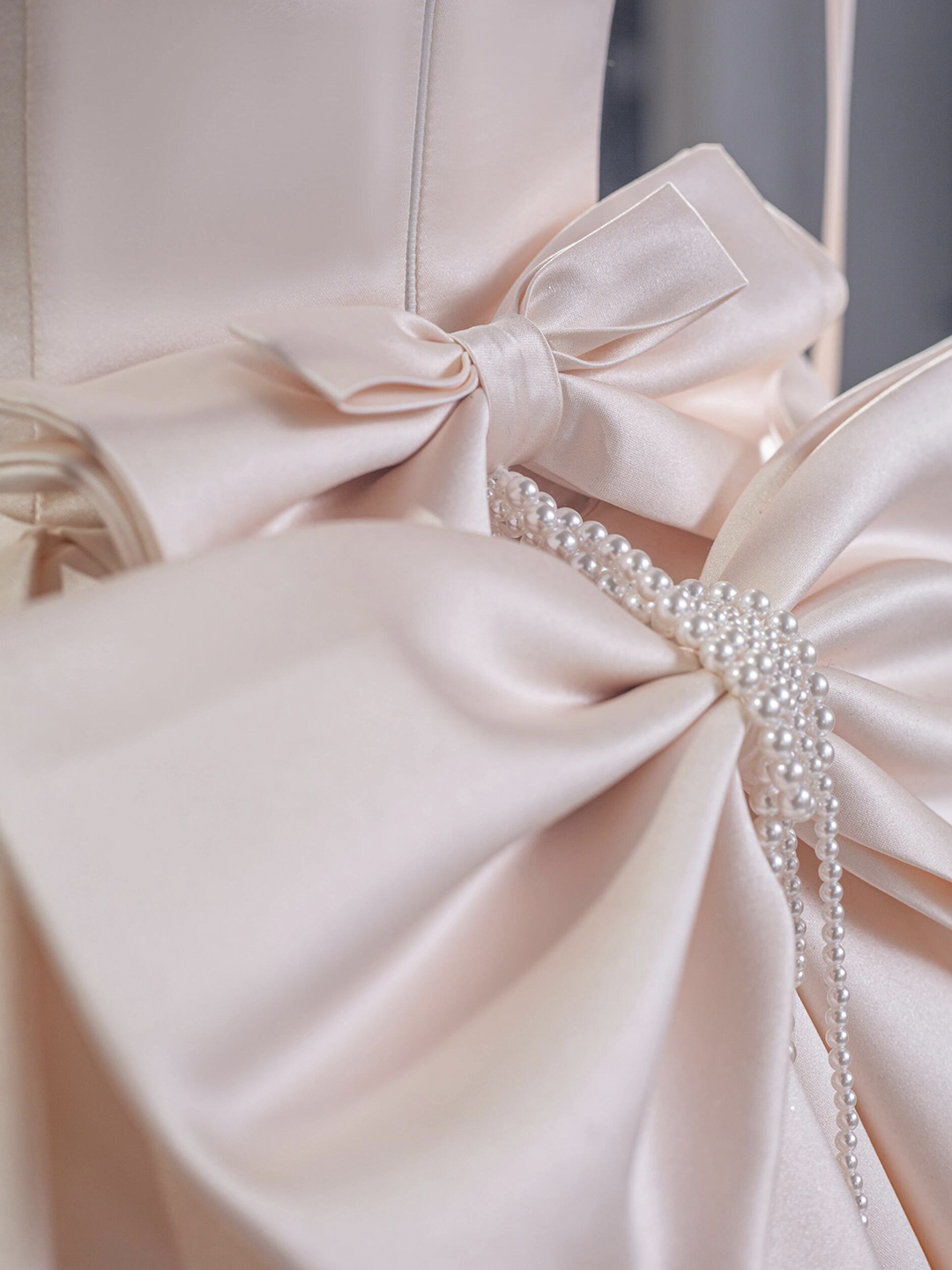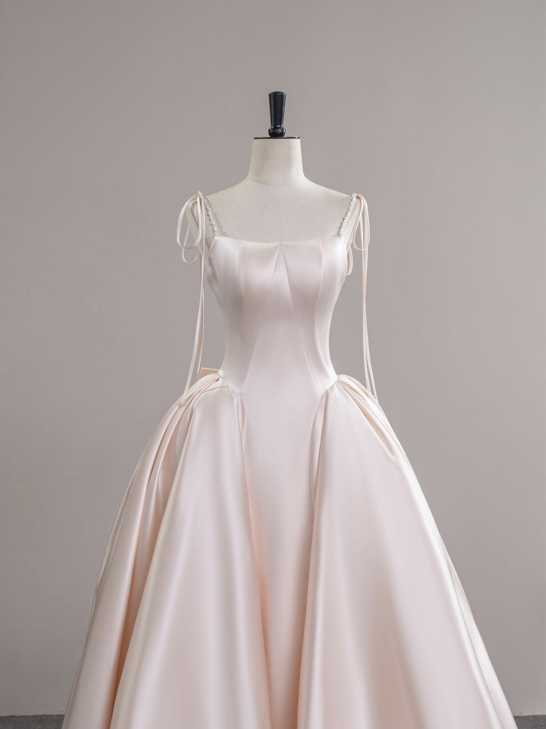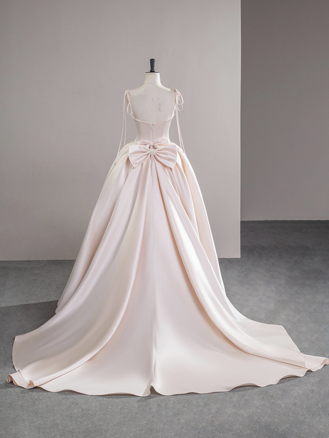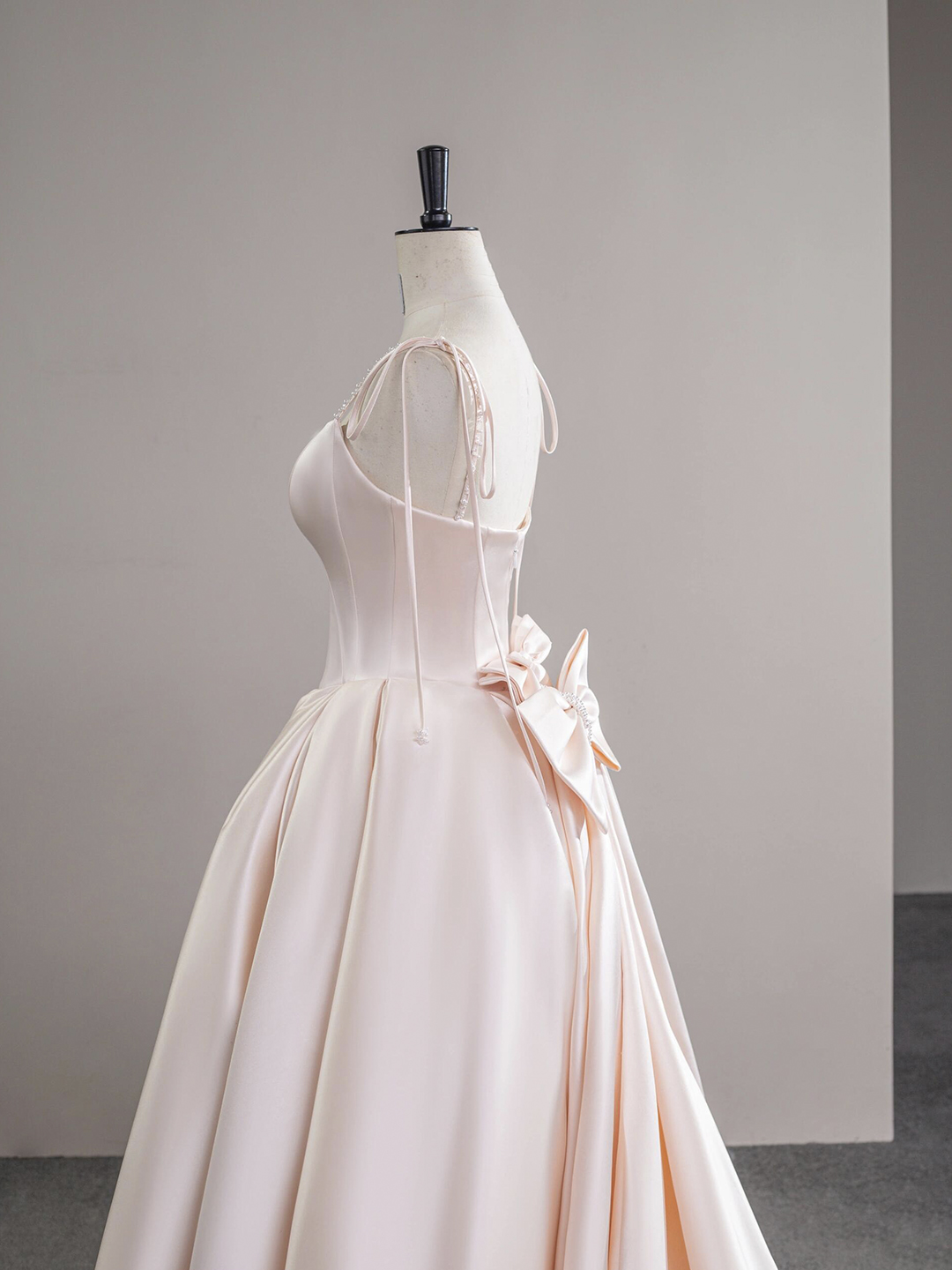 - Pink Satin Long Prom Party Dress, Beautiful A-Line Evening Dress with Bow -