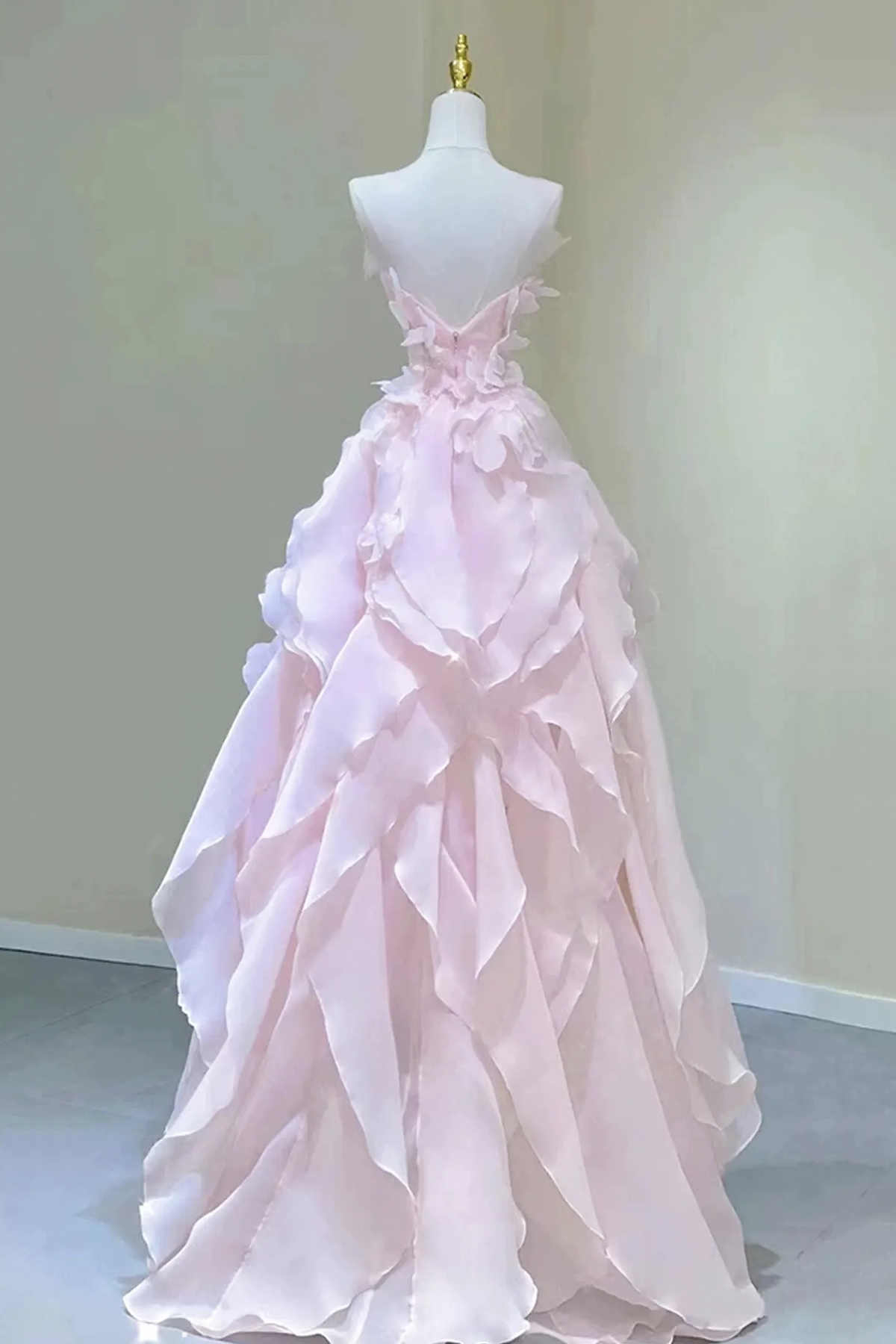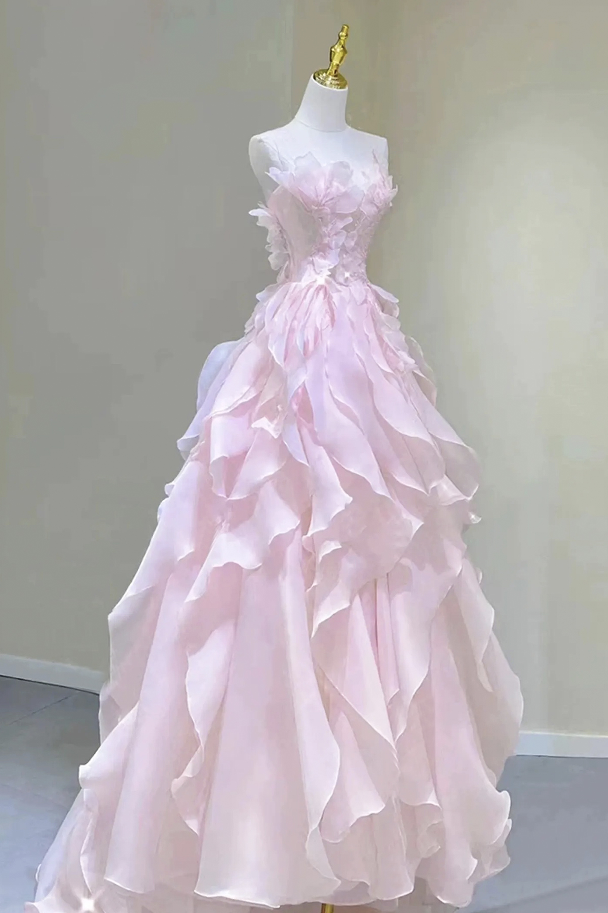 - Pink A-Line Fashion Fairy Long Party Dress, Pink Evening Party Dress -