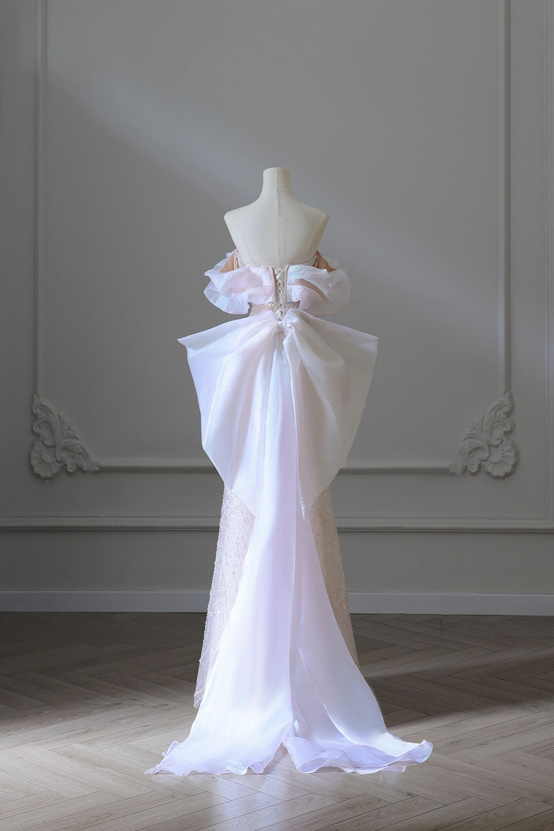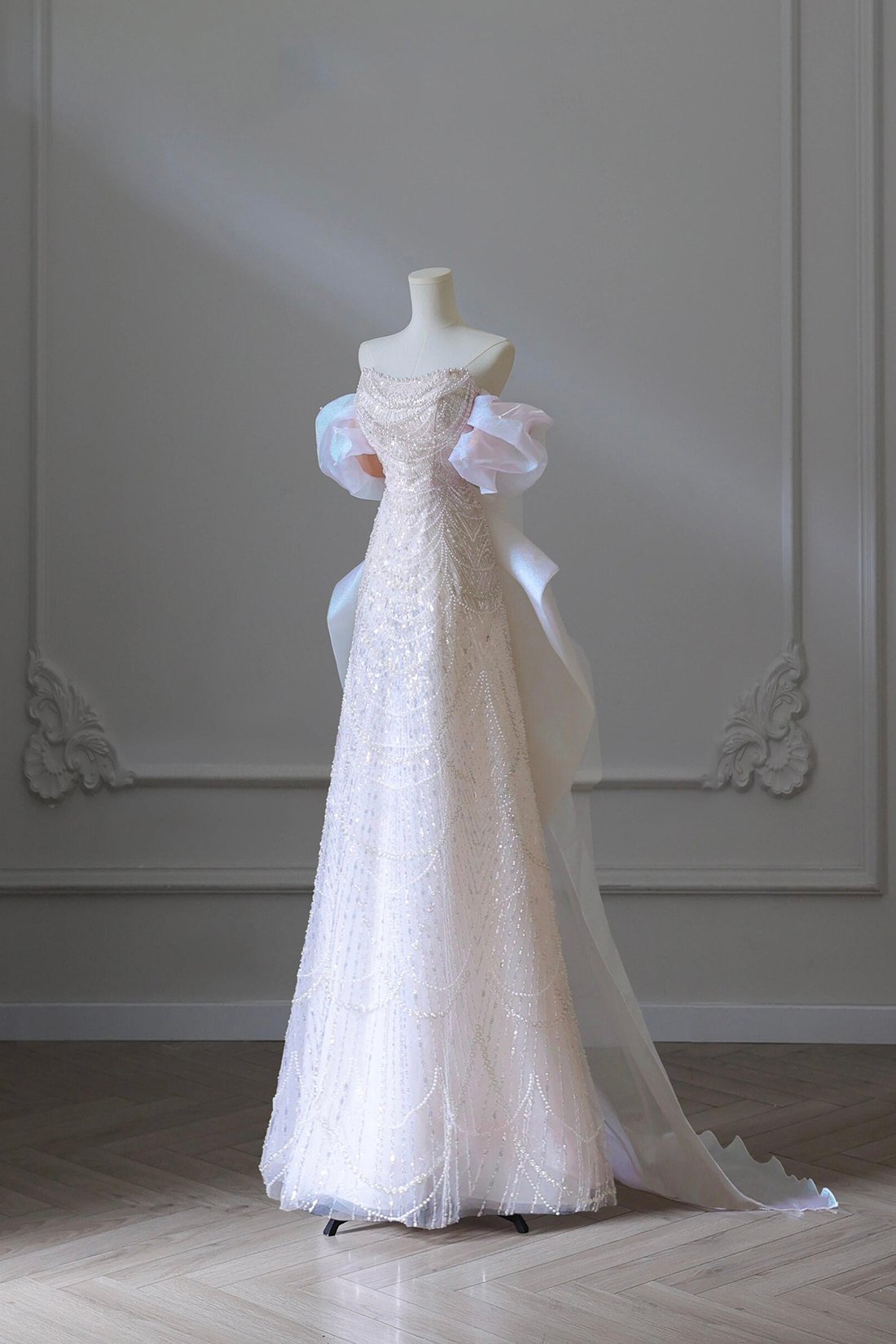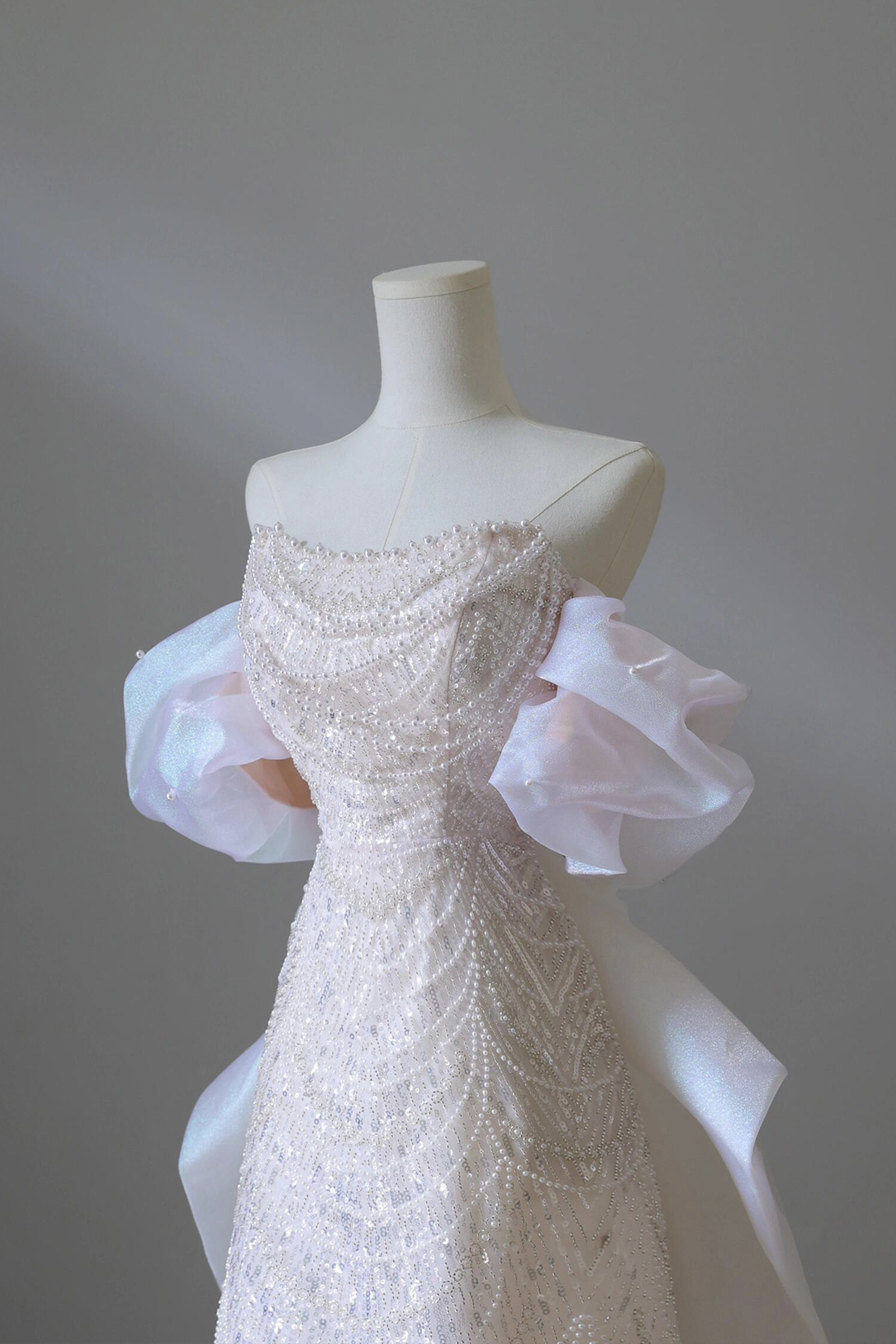 - Lovely Pink Pearl Long A-Line Prom Dress -