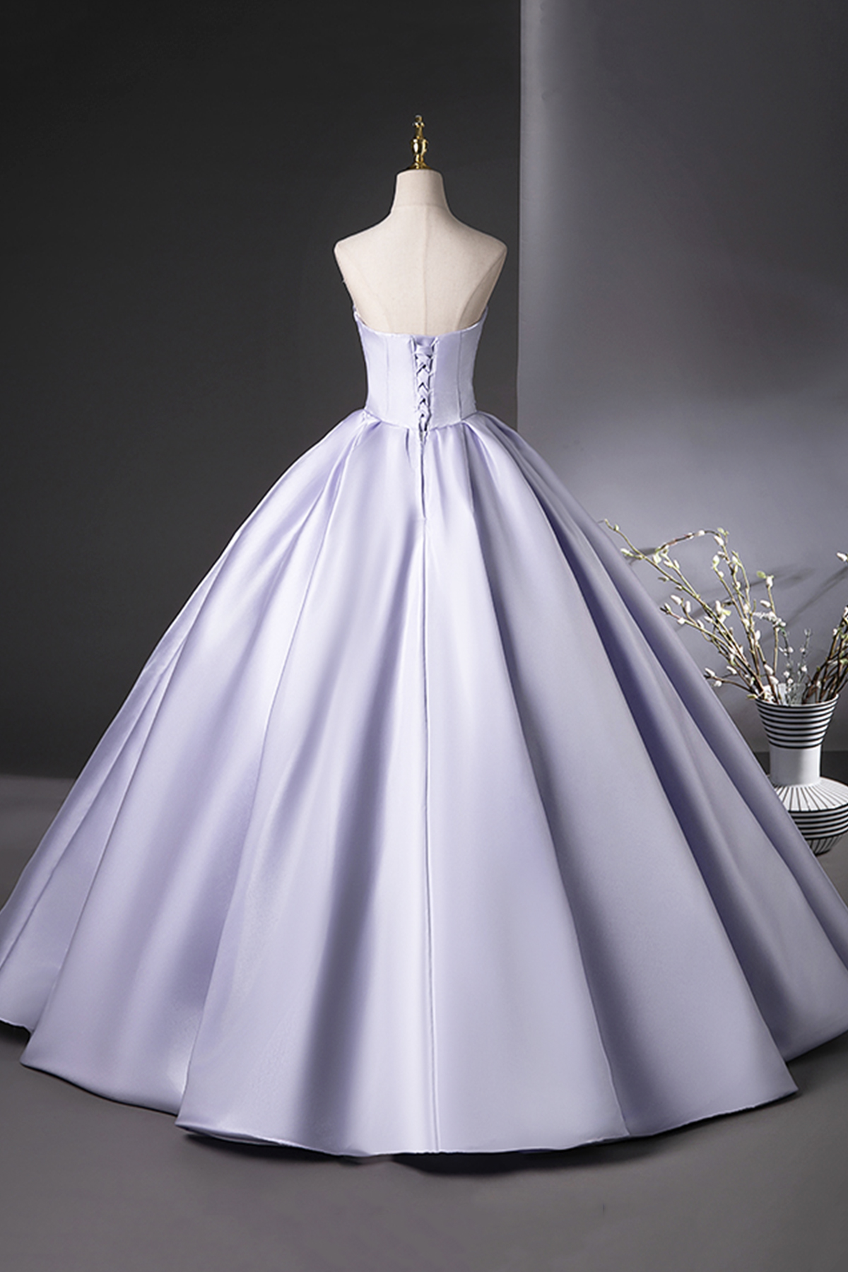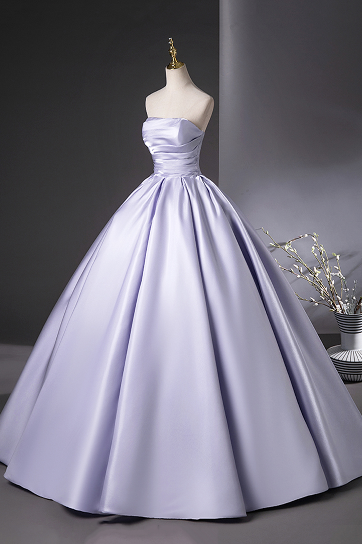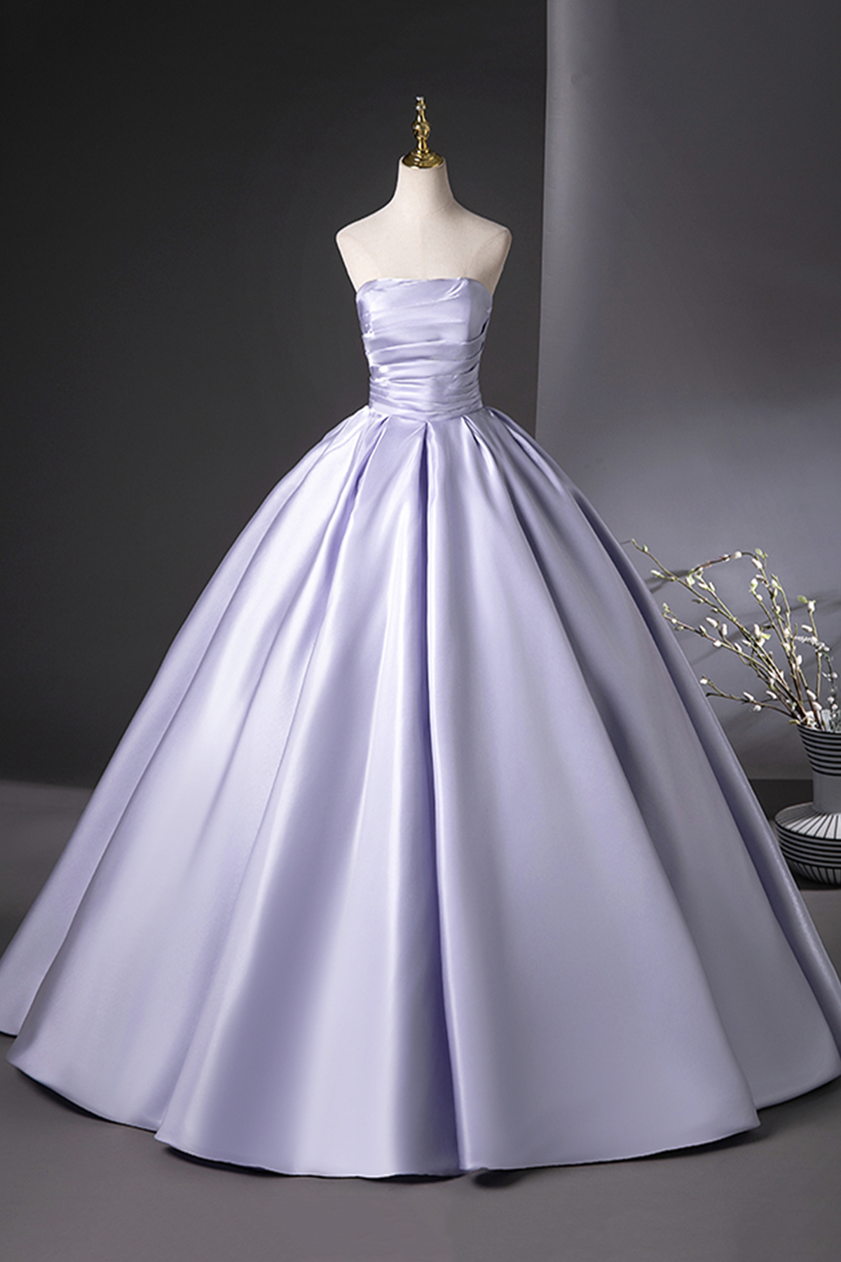 - Lilac Satin Long A-Line Prom Dress, Beautiful Strapless Party Dress -