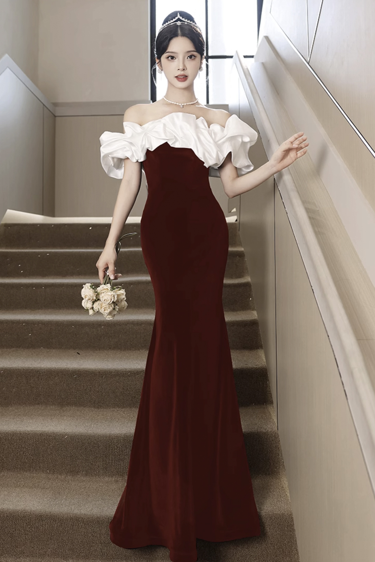 White and Burgundy Velvet Long Mermaid Prom Party Dress