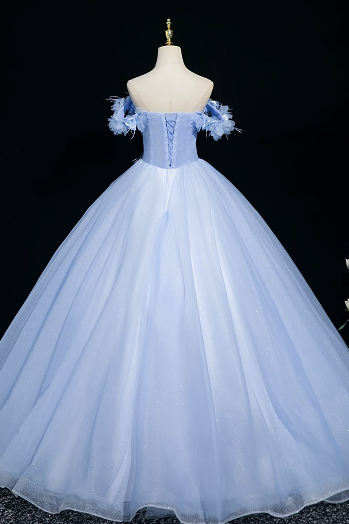 - Blue Tulle Seqins Long Prom Dress, Beautiful A-Line Party Dress -