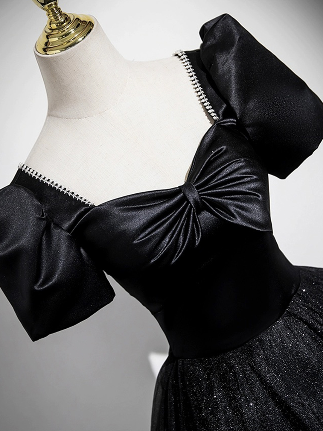 Black Satin and Glitter Tulle Long A-Line Prom Party Dress