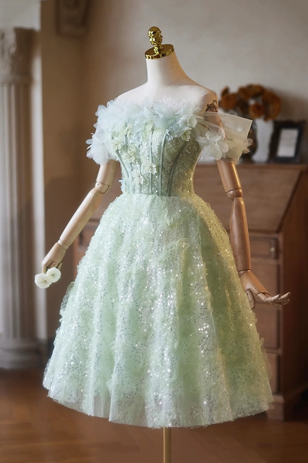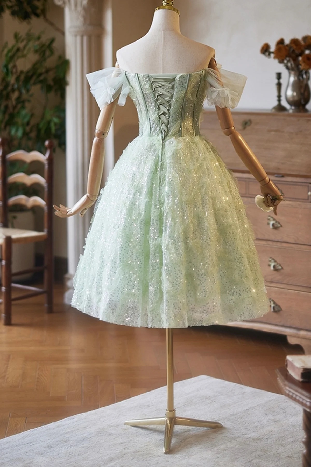 - Green Tulle Sequins Short A-Line Prom Party Dress -