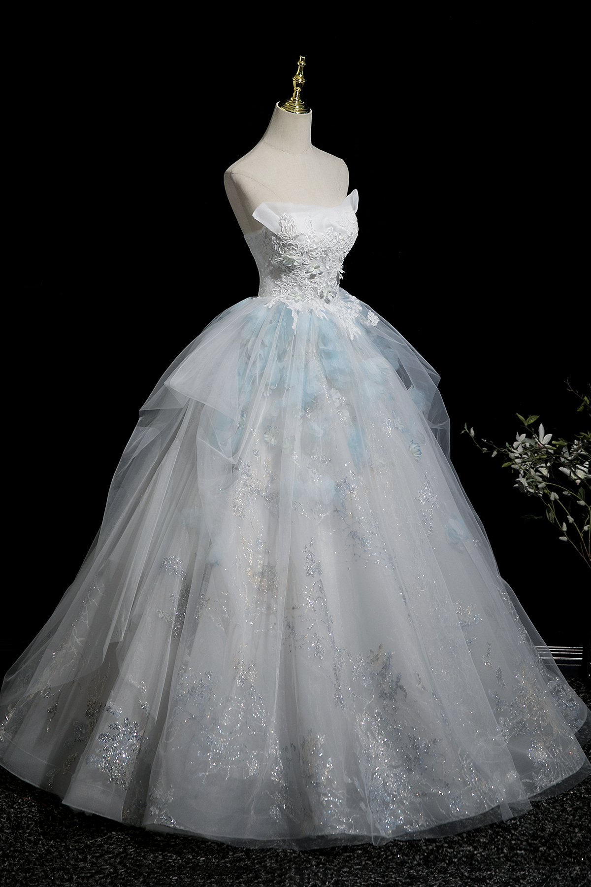- Blue Tulle Lace Long Prom Dress, A-Line Fairy Evening Dress -