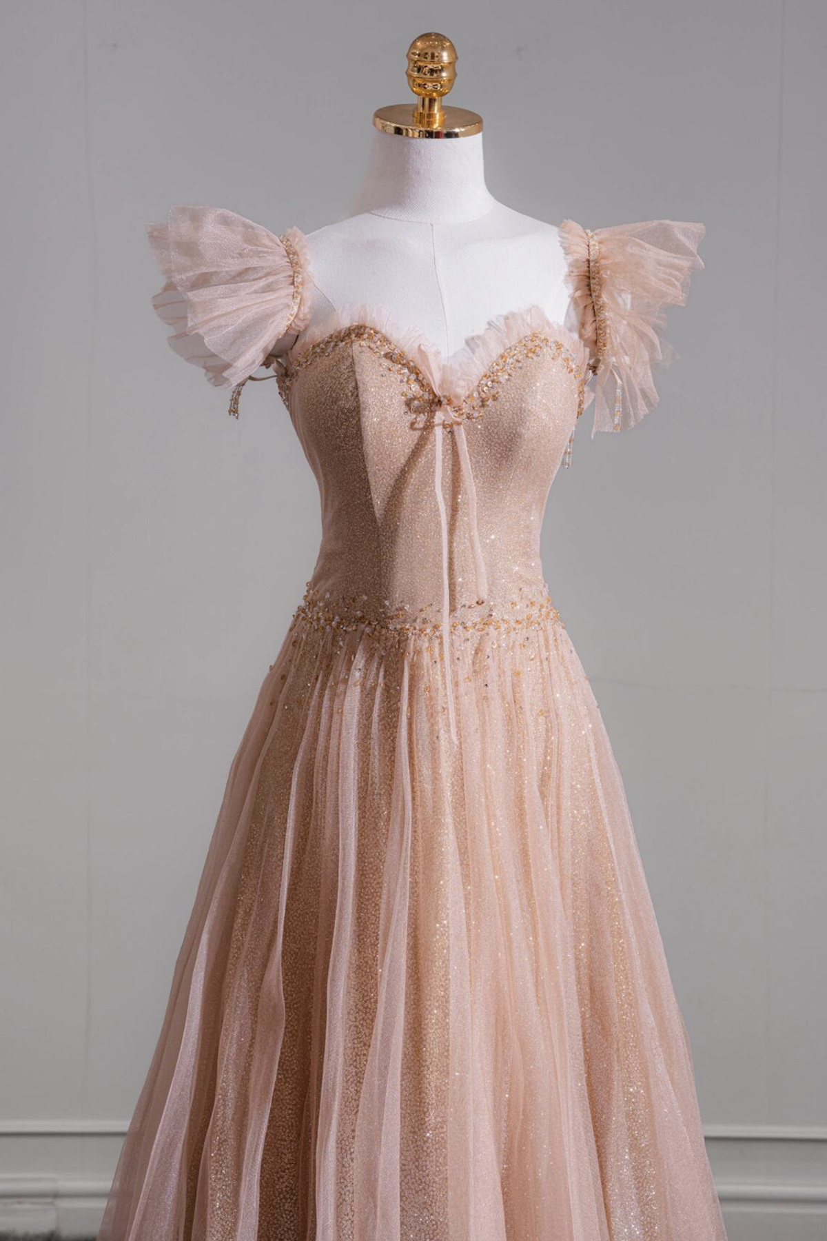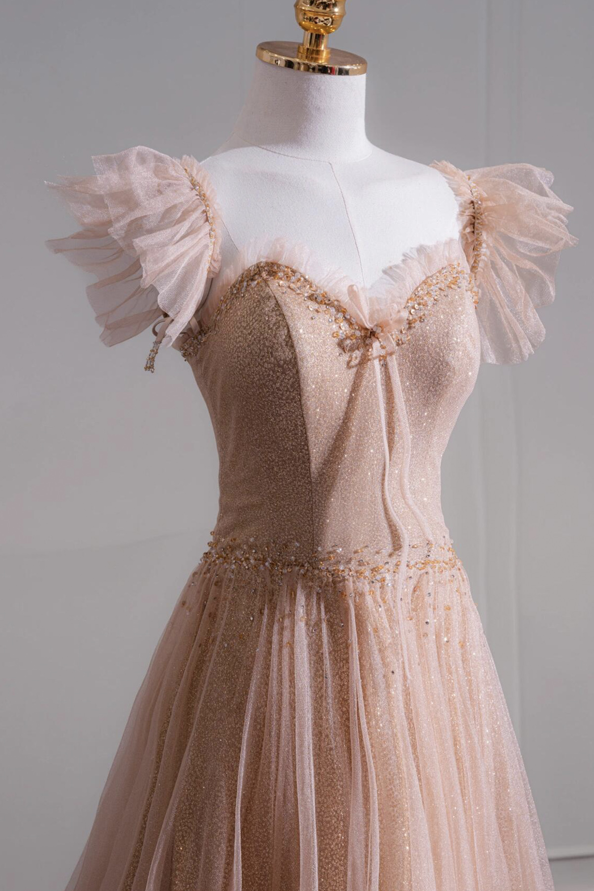 - Shiny Tulle Sequins Long Prom Dress, Lovely A-Line Evening Party Dress -