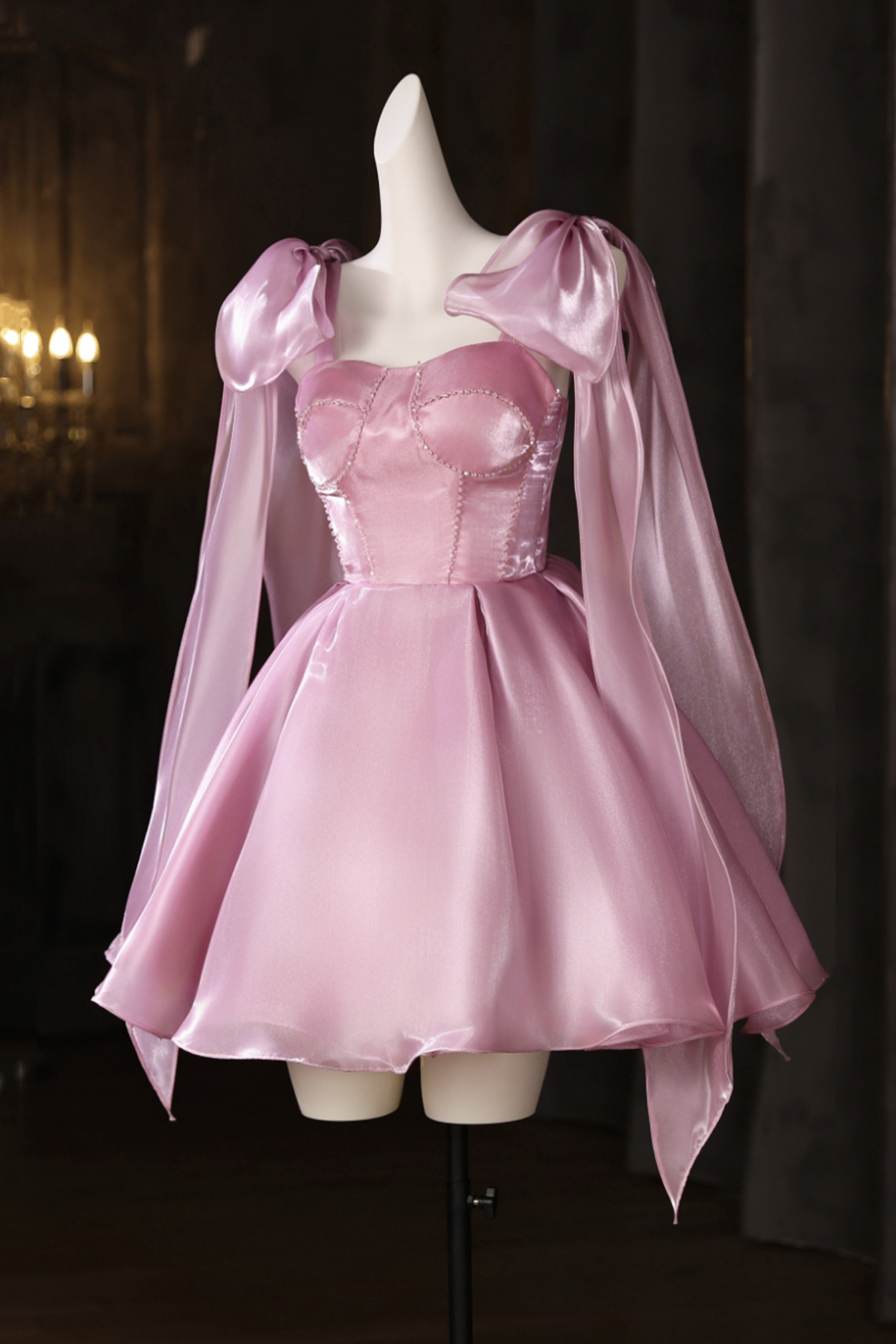 - Lovely Pink Tulle Short A-Line Prom Evening Dress -