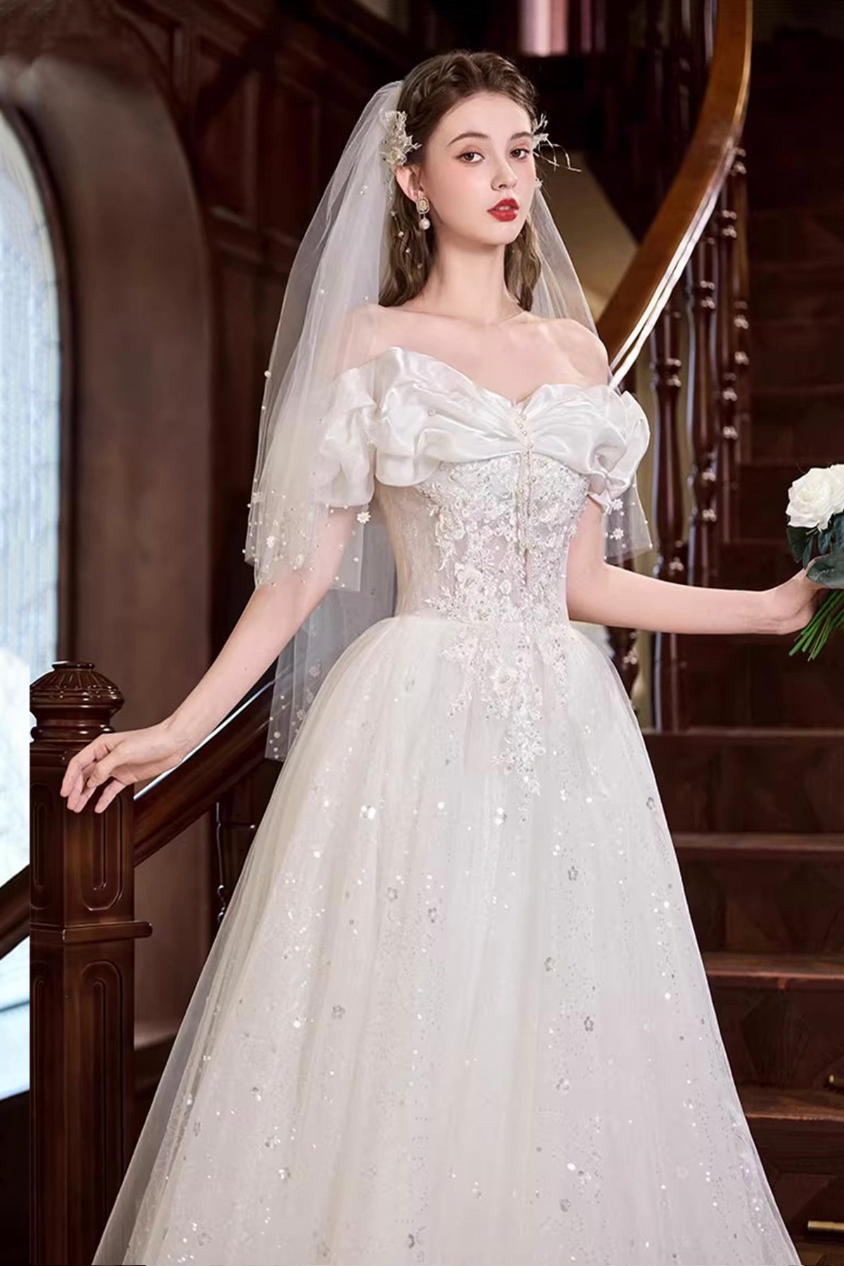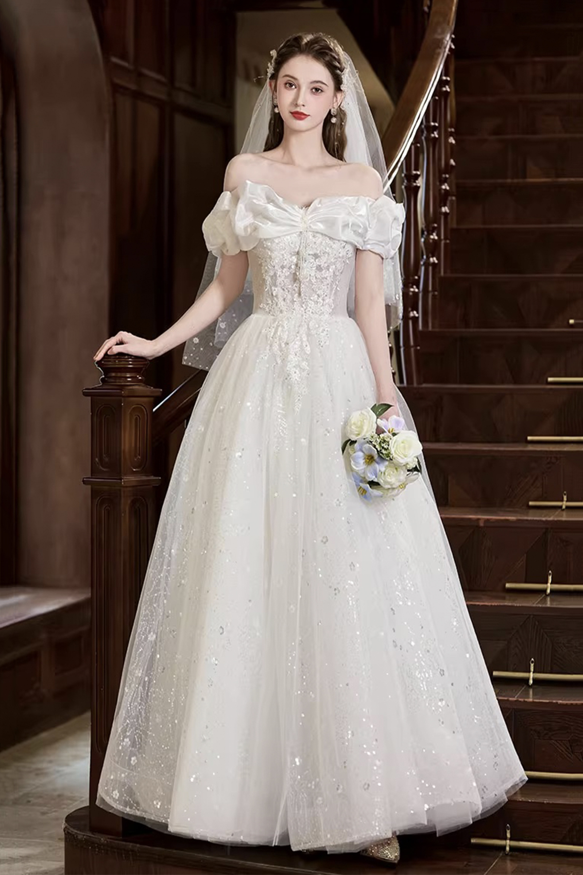 - White Tulle Lace Long A-Line Prom Party Dress -