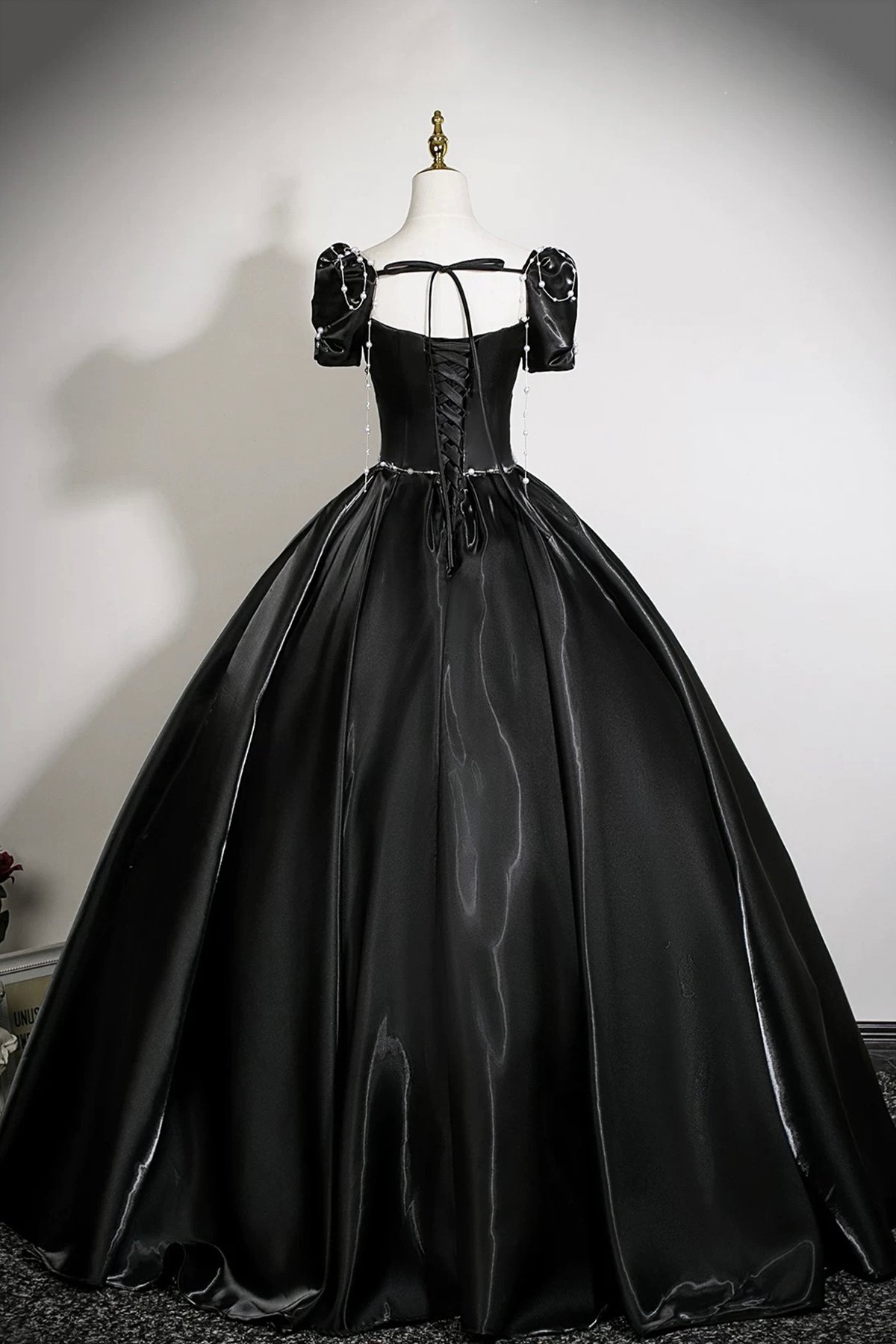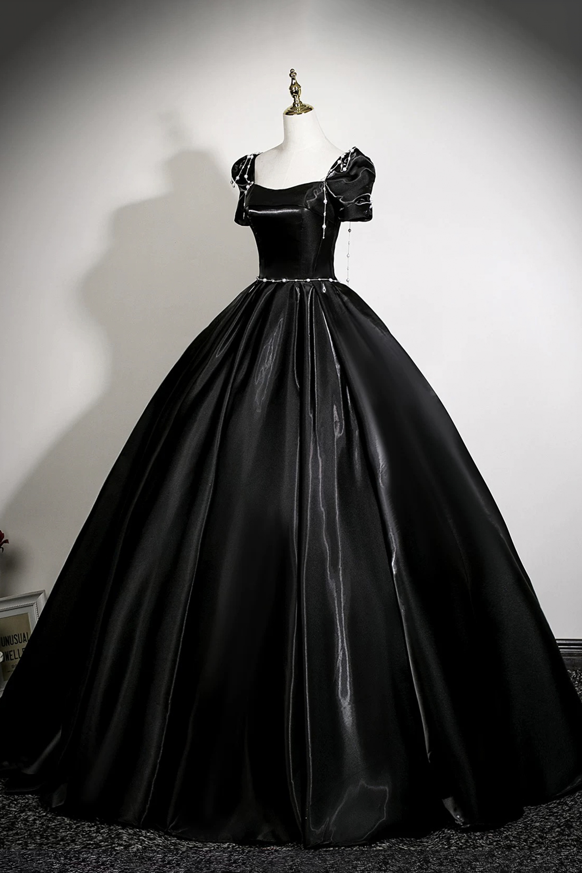 - Black Satin Long A-Line Prom Party Gown -
