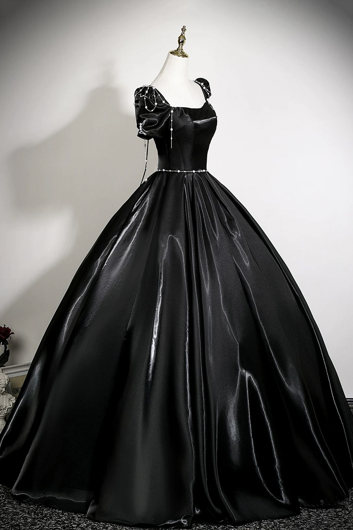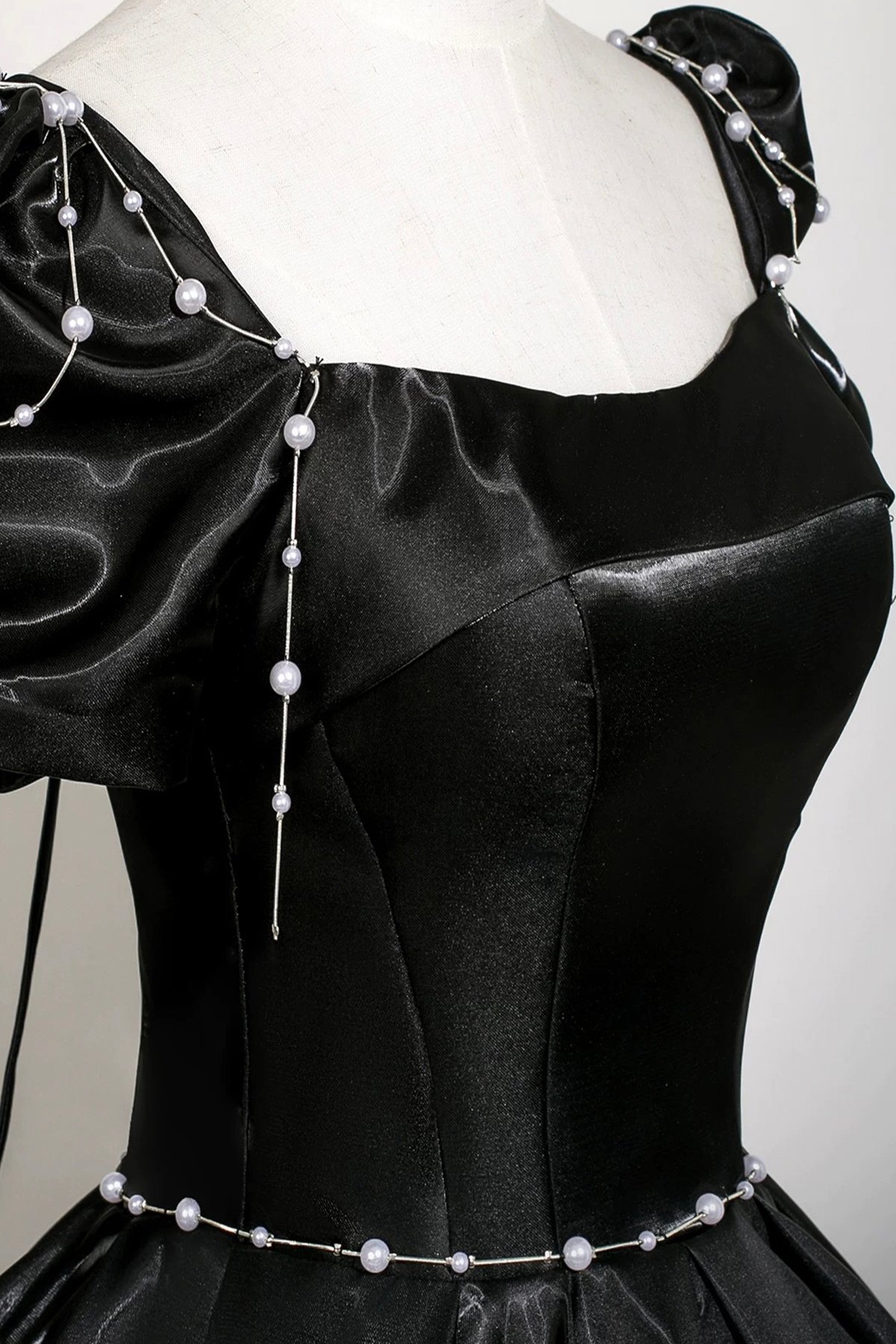 Black Satin Long A-Line Prom Party Gown