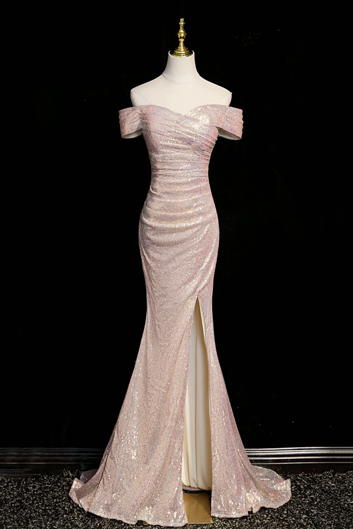 - Pink Mermaid Sequins Long Prom Party Dress -