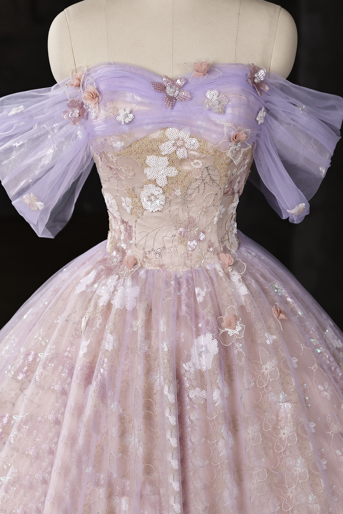 Blush Lilac Tulle Floral Applique Ball Gown